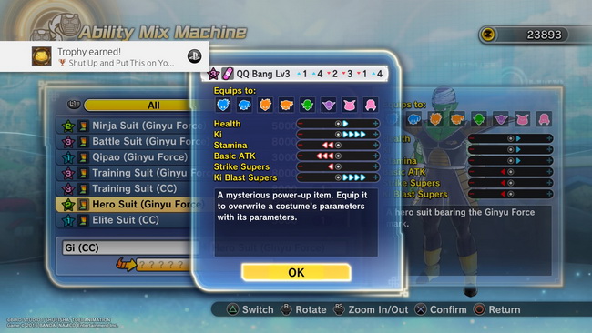 Σίγουρα υπάρχουν quests και στιγμές που θα σας δυσκολέψουν, αλλά γενικότερα θα φτάσετε εύκολα το level cap (80), ακόμη κι αν δεν είστε εξπέρ του είδους. Με σωστή διαχείριση του in-game currency (zeni) για αγορά κατάλληλου εξοπλισμού και χρήσιμων consumables για heal και attribute boosting, το main (single player) mode δεν θα σας ζορίσει, χωρίς όμως να σας χαϊδεύει και…τα αυτιά. Το levelling είναι ο πιο βασικός παράγοντας για την ομαλή ολοκλήρωση του παιχνιδιού και κάθε φορά που ανεβαίνετε ένα level, κερδίζετε τρία attribute points που μπορείτε να τα μοιράσετε όπως θέλετε εσείς ανάμεσα σε Health, Ki, Stamina, Basic Attacks, Strike Supers και Ki Blast Supers. Παρότι το σύστημα είναι αρκετά απλοϊκό, στο meta game θα δείτε ότι υπάρχουν περισσότεροι τρόποι να πειραματιστείτε με το χαρακτήρα σας. Για παράδειγμα, οι Namekians λογίζονται tank του Xenoverse 2, δίνοντας σας τη δυνατότητα να φτιάξετε ένα «ντούκι» από άποψη Stamina και Health. Υπάρχουν όμως και πιο ιντριγκαδόρικα builds που εστιάζουν σε Super Ki και Blasts, τα οποία μπορούν να αλλάξουν αρκετά τον τρόπο προσέγγισης του χαρακτήρα σας.