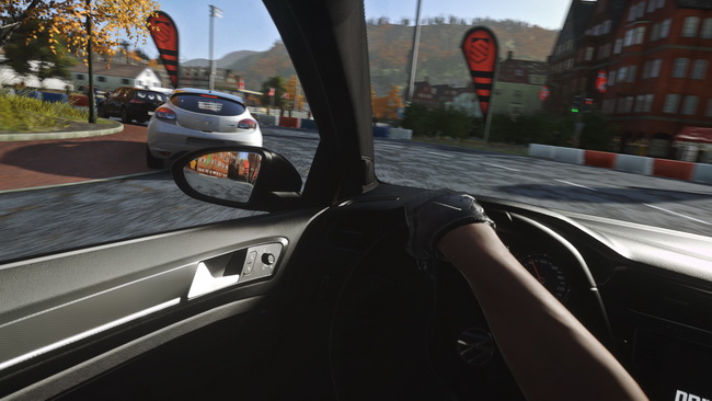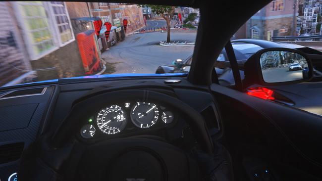 Στη θέση του οδηγού αρχίζουν και εξηγούνται διάφορα. Είναι μοναδική η αίσθηση που μένει από την απλή σκέψη ότι μπορούμε να προσαρμόσουμε το ύψος του καθίσματος για να έχουν την ορατότητα που προτιμούμε. Οι ματιές στους καθρέπτες δίνουν άλλη αίσθηση του χώρου και αντίληψη κάθε κατάστασης. Ενώ οι ματιές στο εσωτερικό κάθε αυτοκινήτου αποκαλύπτουν πιστότητα από τη μία, κι άλλους περιορισμούς από την άλλη. Τα textures, σε συνδυασμό με την ανάλυση του PS VR, καταλήγουν σε ένα κάποιο θόλωμα. Αυτό το υπομένει βέβαια κανείς, το θεωρεί απαραίτητη θυσία ίσως. Ή μήπως όχι; Το αποτέλεσμα είναι τέτοιο που οι ενδείξεις στο ταμπλό είναι κάθε άλλο παρά ευανάγνωστες. Στο κέντρο του ταμπλό υπάρχει μια μεγαλούτσικη οθόνη με μερικά στοιχεία που διαβάζονται λίγο πιο εύκολα. Μονίμως όμως η “συνεννόηση” με οπτικά ερεθίσματα από το εσωτερικό του αυτοκινήτου αφήνει την εντύπωση ότι δεν φτάνει στο επίπεδο που πρέπει, σίγουρα όχι εκείνο που θα επέτρεπε την απόλυτη προσήλωση στην οδήγηση. Όλα αυτά για να επιτευχθούν τα 60fps. Τα οποία άλλοτε είναι αρκετά, άλλοτε όχι. Όσο κοιτά κανείς ευθεία, τα πράγματα βαίνουν καλώς. Με το που σκεφτεί να κοιτάξει πλάγια όμως, που δεν είναι και παράξενο στο κάτω-κάτω της γραφής, αυξάνονται οι πιθανότητες για ναυτία. Και το τελευταίο πράγμα που χρειάζεται στην οδήγηση είναι μια τέτοια περιπέτεια.