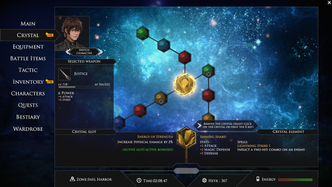 Έξω από τις μάχες, ο παίκτης μπορεί να ορίσει τακτικές για τα μέλη της ομάδας του, δηλαδή να ορίσει τη γενική θέση από την οποία θα ξεκινούν τη μάχη. Μπορεί να βάλει πολλούς σε ένα εξάγωνο ή να τους μοιράσει, βάζοντας τον μάγο πίσω και αφήνοντας τους μαχητές στην πρώτη γραμμή, από τις πιο συνηθισμένες κι αποδοτικές τακτικές. Ολοκληρώνοντας κάποιους ειδικούς (τυχαίους) στόχους ανά μάχη, ο παίκτης μπορεί να αποσπάσει καλύτερο loot και χρήματα. Το loot περιλαμβάνει εξοπλισμό, υλικά για crafting ή κρυστάλλους που χρησιμοποιούνται για την εξέλιξη των χαρακτήρων. Όσο ένα όπλο ανεβαίνει level μέσω της χρήσης, τόσες περισσότερες θέσεις για κρυστάλλους θα αποκτήσει, τις οποίες ο παίκτης γεμίζει με κρυστάλλους του ίδιου χρώματος (πιθανότατα για να μην βάζει παντού το ίδιο). Οι κρύσταλλοι προσφέρουν bonus στα στατιστικά και νέα skills, οπότε το πώς λειτουργεί ένας χαρακτήρας μπορεί να αλλάξει αρκετά όταν αποκτήσει νέο, καλύτερο όπλο, καθώς ενδεχομένως ο τρόπος με τον οποίο θα εξελίσσεται το όπλο, οι θέσεις για κρυστάλλους που θα ανοίξουν αλλά και τα χρώματα που θα έχουν, ίσως είναι πολύ διαφορετικά συγκριτικά με του προηγούμενου όπλου. Εδώ είναι ένα αρνητικό: για ποιο λόγο ένα skill να «δένεται» στο όπλο κι όχι στον χαρακτήρα; Ειδικά στις πρώτες ώρες του παιχνιδιού, το «ταβάνι» ενός όπλου είναι κάπως χαμηλό οπότε η εξέλιξη του χαρακτήρα θα σταματήσει σύντομα. Όσο ο παίκτης προχωράει πιο βαθιά στο παιχνίδι, τόσο μικραίνει αυτό το πρόβλημα, αλλά μεγάλο μέρος της λύσης βρίσκεται στο crafting κι αυτό συνεπάγεται αρκετό grinding, για να μαζέψει τα υλικά, να βρει το blueprint του όπλου και να το κατασκευάσει – οπότε ίσως απλώς συμβιβαστεί με όσα βρίσκει σε σεντούκια ή κερδίζει από μάχες.