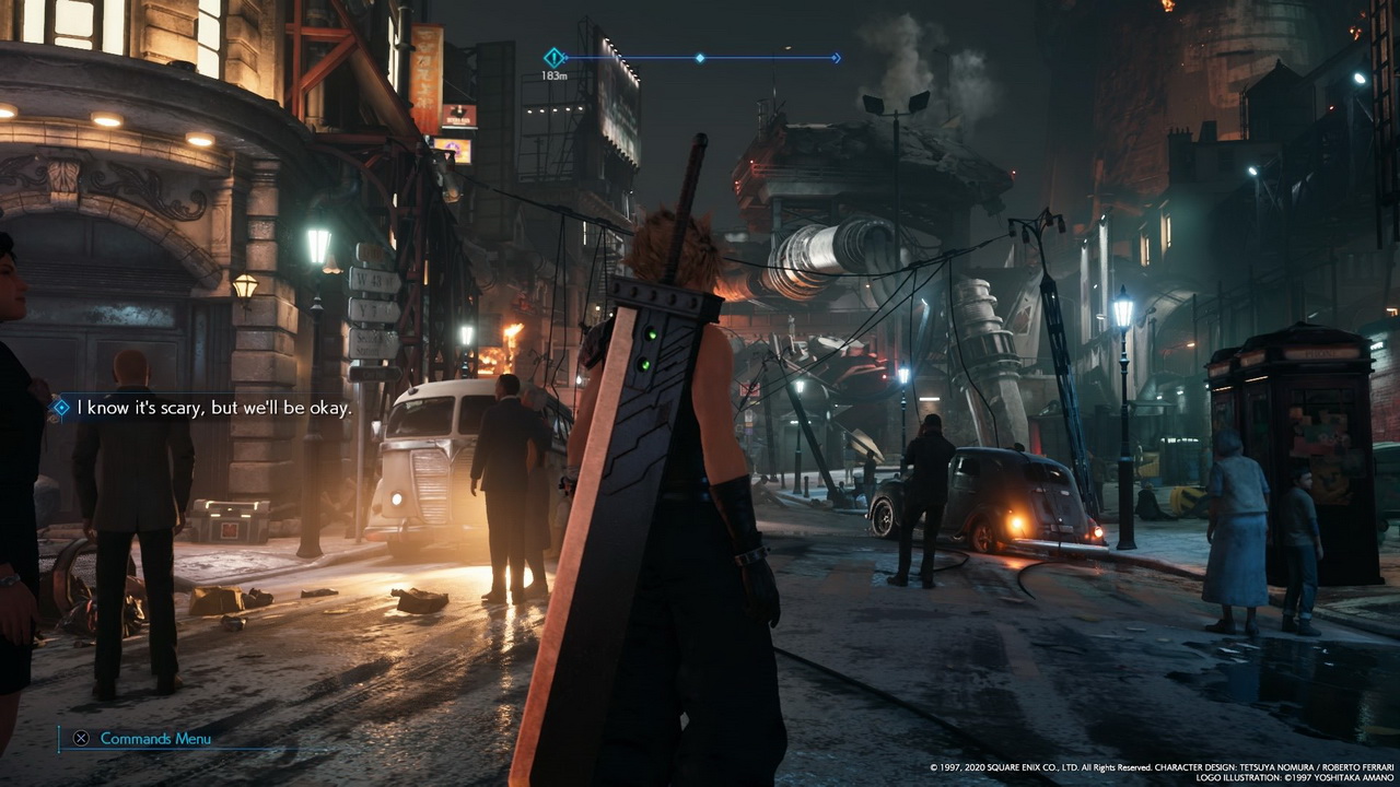 Το σίγουρο είναι πως ο τρόπος με τον οποίο παρουσιάζονται τα πάντα είναι εντυπωσιακός. Το Final Fantasy VII Remake κρατά την αισθητική που θυμόμαστε από το Advent Children και όχι μόνο, με τη διαφορά ότι σχεδόν όλα στο παιχνίδι προβάλλονται με τη μηχανή γραφικών χωρίς να αφήνουν παράπονο. Παρότι Final Fantasy, η χρήση βίντεο είναι περιορισμένη, σε σημεία που -ξεκάθαρα- αυτό που βλέπουμε να συμβαίνει δεν θα μπορούσε να τρέξει σε κονσόλα. Η σκηνοθεσία είναι, επίσης παραδοσιακά, τους ύψους και του βάθους, με τις σκηνές δράσεις να επιστρατεύουν με πρώτη ευκαιρία διάφορες περίεργες λήψεις, όχι επειδή διευκολύνουν κινηματογραφικά αλλά επειδή… είναι εφικτές στον ψηφιακό κόσμο. Ακόμη κι έτσι χωρούν πολλά όμορφα πλάνα που μένουν στη μνήμη, με τις καλές στιγμές να είναι επίσης πολυπληθείς. Ο τεχνικός τομέας σε όλες αυτές τις περιπτώσεις είναι άξιος αναφοράς. Είναι η πρώτη φορά εδώ και πολλά χρόνια που καταφέρνει η Square Enix να ρέουν τα πάντα ακριβώς όπως πρέπει (δοκιμάσαμε το παιχνίδι σε PS4 Pro, ακούσαμε ότι σε PS4 προκύπτουν κάποια θέματα με streaming). Δεν χάνονται frames, δεν υπάρχει πρόβλημα με frame pacing, οι χρόνοι φόρτωσης κρύβονται αρκετά καλά (όσο γίνεται δηλαδή σε παιχνίδια τέτοιου όγκου). Γενικά δεν ξεφεύγει τίποτα. Ανάλογα καλή είναι η εντύπωση από τη μουσική. Σαφώς και το μοτίβο τέθηκε από τον μεγάλο Nobuo Uematsu, αλλά ο Masashi Hamauzu ανέλαβε διασκευές κ.λπ. Παρότι ο γράφων δεν του έχει ιδιαίτερη συμπάθεια, εδώ έκανε πολύ καλή δουλειά με νέες ενορχηστρώσεις, «ύπουλα» samples κ.ά.