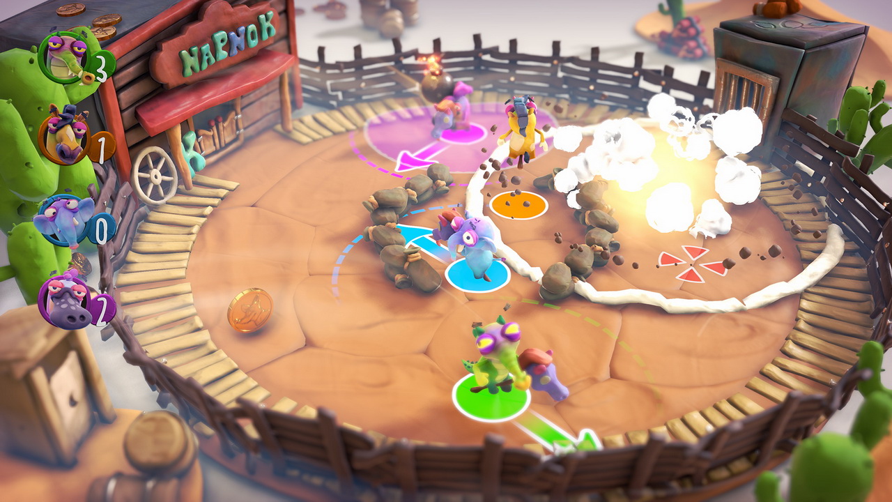 Με smartphone ανά χείρας και όλα συνδεδεμένα στο ίδιο δίκτυο με το PS4 (ή στο τοπικό δίκτυο που μπορεί να δημιουργήσει το PS4 αν δεν υπάρχει άλλο διαθέσιμο), δεν χρειάζεται κάτι παραπάνω για να ξεκινήσει το πάρτι στο…party game. Ως συνήθως, έχουμε να κάνουμε με συλλογή από mini games, 15 στον αριθμό, που μπορούμε να παίξουμε κατά το δοκούν, διαλέγοντας αυτό που θέλουμε συγκεκριμένα ή σε τυχαίες τετράδες στο party mode που, τεχνικώς, είναι το βασικό και ενδεδειγμένο για την περίσταση mode. Το πλήθος των διαφόρων mini games λοιπόν σημαίνει ότι η επανάληψη δεν αργεί να έρθει. Από την άλλη βέβαια, δεν είναι και περίεργο αυτό το πλήθος μιας και, σε αντίθεση με κάποιο Mario Party, αυτή η παραγωγή είναι μικρότερη και οικονομικότερη. Ένας λόγος παραπάνω βέβαια να μην επαναλαμβάνονται μερικές ιδέες στο μικρό αυτό πλήθος, αν και δεν παραγίνεται τελικά το κακό. Π.χ. ένα mini game με jet packs και ένα ακόμη με μηχανές δεν διαφέρουν και πολύ από την άποψη ότι ο έλεγχος είναι παρόμοιος, η διάθεση αναβαθμίσεων από γύρο σε γύρο επίσης, όπως και το ότι κάθε παίκτης ψηφίζει για τις αναβαθμίσεις που θα πάρουν άλλοι παίκτες, κάνοντας τη διαδικασία ευχάριστα χαοτική και ανάλογα απρόβλεπτη. Το ότι κλασικές ιδέες του Mario Party αποτέλεσαν πηγή έμπνευσης είναι προφανές όσο και λογικό πάντως. Απόδειξη το mini game στο οποίο οι παίκτες κυλούν στον πάγο και προσπαθούν να μην καταλήξουν στο κενό. Πιο ευχάριστο πάντως είναι το mini game στο οποίο γίνεται ένας χαμός για να σαμποτάρει ένας παίκτης τον άλλον, να μαζέψει νομίσματα αλλά και να ανοίξει τελευταία στιγμή αλεξίπτωτο, μιας και όλα γίνονται σε ελεύθερη πτώση, για να προσγειωθεί εγκαίρως, ασφαλής και πρώτος. Αλλού έχει ο καθένας το τέρμα του και προσπαθεί να μη φάει γκολ.