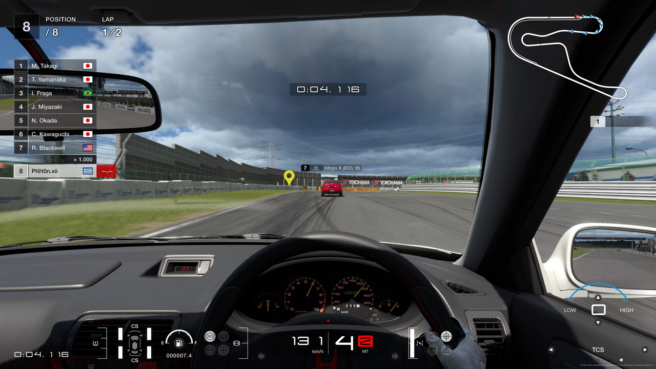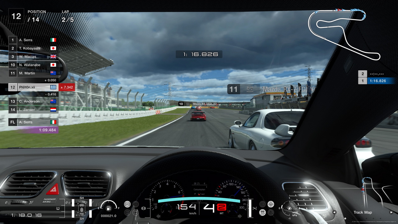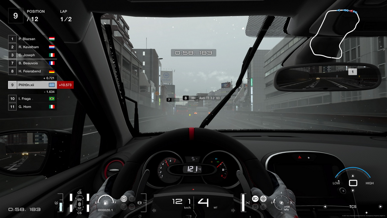 Πίσω στην οδήγηση όμως, γιατί το Gran Turismo 7 έχει ακόμα κι άλλα να πει. Ο Yamauchi και η ομάδα του είχε τονίσει πως το μοντέλο καιρού έχει μελετηθεί διεξοδικά αυτή τη φορά και χαρήκαμε όταν διαπιστώσαμε τις διαφορές του βρεγμένου από το στεγνό οδόστρωμα, και την διαφορετική προσέγγιση στην οδήγηση που απαιτεί αυτό. Ακόμα κι αν η βροχη δεν εχει την ρεαλιστικοτερη απεικονιση που εχουμε δει ποτε, νικητής σε αυτό ήταν και παραμένει το DriveClub, είναι η προσέγγιση που είναι πιο ολοκληρωμένη. Σε μεγάλες πίστες όπως το Nurburgring ή το Spa, υπάρχουν τμήματα που βρέχει και ΄άλλα που είναι στεγνά, κάτι που κάνει ακόμα πιο ρεαλιστική την απεικόνιση του σπορ. Ταυτόχρονα το οδόστρωμα των πιστών “κρατάει νερό” σε σημεία που η άσφαλτος έχει λακκούβες, οπότε εκεί να είστε σίγουροι πως σας περιμένει υδρολίσθηση, ειδικά με αγωνιστικά λάστιχα. Κατά τη διάρκεια των βρεγμένων αγώνων η αγωνιστική γραμμή στεγνώνει, ενώ το σπρέι που πέφτει πάνω στο παρμπρίζ μας περιορίζει την ορατότητα, αναγκάζοντας μας να ρισκάρουμε βγαίνοντας στο βρεγμένο οδόστρωμα, εκτός αγωνιστικής γραμμής, αν θέλουμε να τολμήσουμε μια προσπέραση.