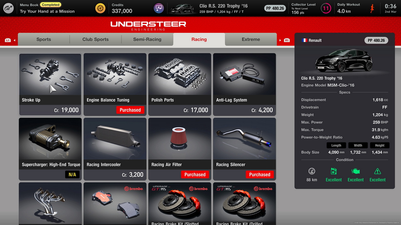 Στο μενού του τίτλου μας δίνεται και η επιλογή για εξέλιξη των αυτοκινήτων που έχουμε στην κατοχή μας. Μπορούμε λοιπόν να ψωνίσουμε αγωνιστικά φρένα και τακάκια, ρυθμιζόμενες αναρτήσεις, ελεύθερα φίλτρα αέρα και εξατμίσεις που θα ανεβάσουν το επίπεδο απόδοσης των αυτοκινήτων μας, Φυσικά και υπάρχουν όρια στην εξέλιξη οποιουδήποτε οχήματος, όμως ακόμα κι έτσι εκτιμούμε που το Gran Turismo 7 μας δίνει και αυτήν την επιλογή. Οσοι θέλουν βέβαια μπορούν πάντα να την παρακάμψουν και απλά να προμηθευτούν ένα πιο δυνατό αυτοκίνητο από τις αγορές του τίτλου, είτε καινούριο είτε μεταχειρισμένο. Υπάρχει ξεχωριστή τοποθεσία όπου μπορούμε να πλύνουμε το αυτοκίνητο που έχουμε επιλέξει, να του αλλάξουμε λάδια αν έχουμε κάνει πολλά χιλιόμετρα και να παραμετροποιήσουμε οτιδήποτε θέλουμε στην εξωτερική του εμφάνιση. Γενικά οτιδήποτε σκεφτείτε πως θέλετε να πειράξετε στα αυτοκίνητα της συλλογής σας, μάλλον μπορείτε να το κάνετε και αυτό μας αφήνει ακόμα περισσότερο ικανοποιημένους από τον τίτλο.