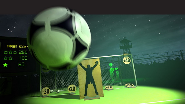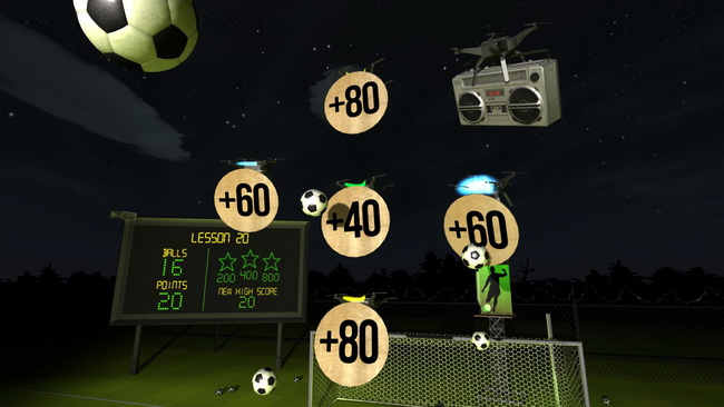 Στο προπονητήριο αυτό λοιπόν όλα ξεκινούν με μερικές απλές κεφαλιές προς το τέρμα. Αργότερα εμφανίζεται ένας χαρτονένιος τερματοφύλακας που δεν αργεί να αρχίσει να κινείται πέρα και δώθε/ Στόχοι διαφορετικής αξίας σε πόντους εμφανίζονται, κινούνται όλοι μαζί, οι μπάλες συνδυάζονται με εκρηκτικά και γενικά γίνεται ένας χαμός. Τα επίπεδα χωρίζονται σε ομάδες και η αξιολόγηση της επίδοσης σε κάθε ένα ακολουθεί το γνωστό κανόνα των τριών αστεριών.