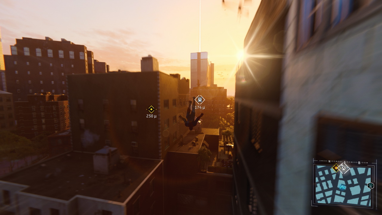 Και η πλοήγηση είναι απλά απίθανη στο Spider-Man. Πέραν αυτού έχει και βάση στη λογική. Ο Spider-Man μπορεί να πιαστεί μόνο όταν υπάρχει σημείο πάνω από τον ίδιο, ειδάλλως κάνει ελεύθερη πτώση μέχρι να βρεθεί η πρώτη ευκαιρία να στείλει κάπου τον ιστό του. Ο παίκτης μπορεί να δει την όλη διαδικασία ως αυτοματισμό, εξασφαλίζοντας όμως ότι θα αργεί περισσότερο σε κάθε διαδρομή, θα είναι εύκολο να κερδίσει ύψος, όχι όμως και ορμή. Για την τελευταία ο Spider-Man έχει μερικές επιλογές, από εκτόξευση ιστού προς τα πίσω για επιπλέον ώθηση, εκτόξευση ιστού προς το κοντινότερο ή βολικότερο σημείο αγκύρωσης για κέρδος χρόνου ενώ, αργότερα, το πρώτο ενισχύεται και μπαίνει στο παιχνίδι και ο χρονισμός των αλμάτων καθώς ο Spider-Man φτάνει σε σημείο αγκύρωσης. Του δίνουν ώθηση έτσι κι αλλιώς, αλλά με πρόοδο στο skill tree τον στέλνουν καρφωτό στο επόμενο οικοδομικό τετράγωνο, αν όχι παραπέρα. Δένοντας όλες τις δυνατότητες και πιθανές διαδρομές, το παιχνίδι απαιτεί συνεχή προσοχή από τον παίκτη για την πλοήγησή του στη Νέα Υόρκη. Είναι ο μόνος τρόπος να κερδίζει χρόνο και να αισθάνεται, τελικά Spider-Man. Αυτή είναι η μεγαλύτερη επιτυχία της Insomniac στην προκειμένη. Μόνο αρνητικό η συμπεριφορά του χαρακτήρα όταν βρίσκεται σε κάποιο πεζούλι, κάποια άκρη ή κινείται πάνω σε κτίριο όσο βρίσκεται σε περίεργη γωνία λήψης, και τα δυο σενάρια περισσότερο εξαίρεση παρά κανόνας εφόσον ο παίκτης κάνει αυτό που προφανώς περιμένει το παιχνίδι από τον ίδιο. Είναι τόσο καλό το αποτέλεσμα που χρειάζεται συχνά δεύτερη σκέψη πριν τη χρήση του fast travel, που, ευτυχώς, δεν αργεί να προστεθεί ως δυνατότητα, διότι η «κανονική» διαδρομή φτιάχνει το κέφι. Η πολλοστή φορά που θα κάνετε τρελή διαδρομή με φοβερή ταχύτητα και θα υπολογίσετε σωστά την κάθοδο προς το σημείο εκκίνησης quest, εξασφαλίζοντας προσγείωση με στιλ είναι το ίδιο απολαυστικό με την πρώτη.