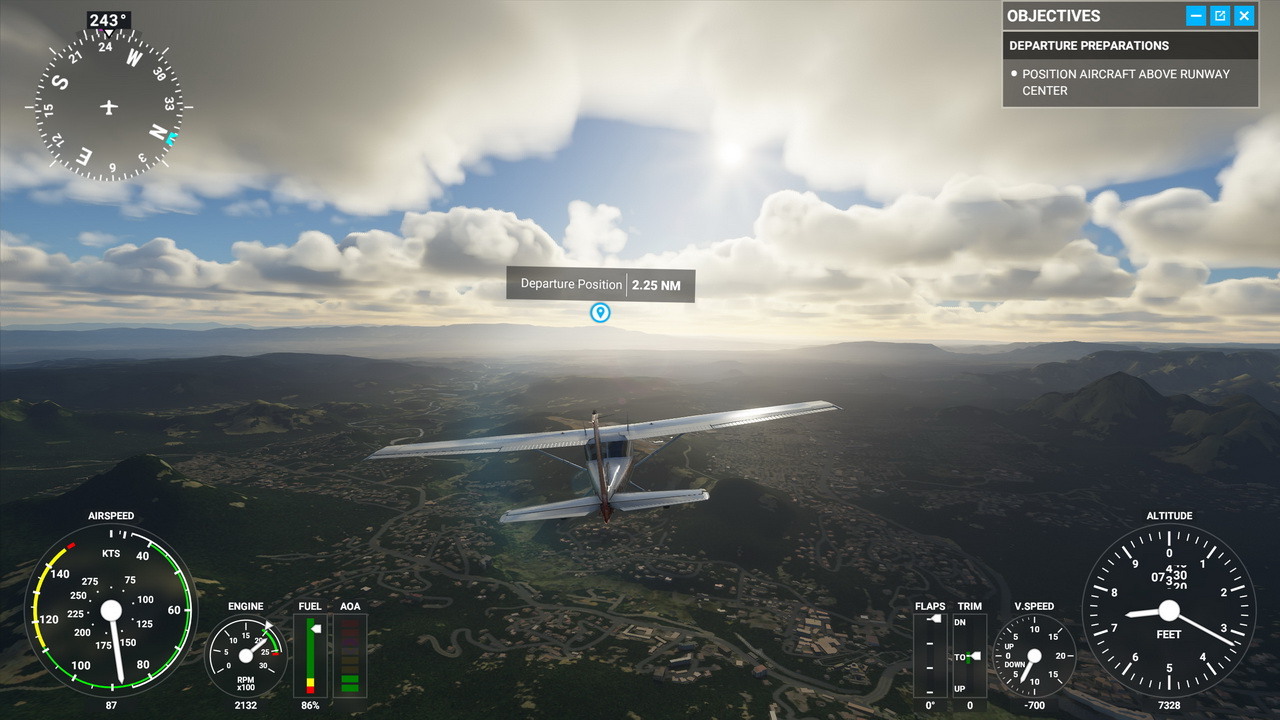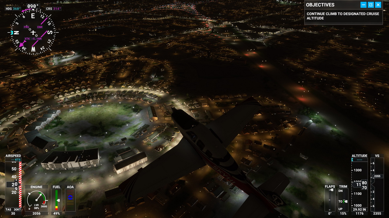 Προφανώς, το ασφαλέστερο mode να επιλέξει κάποιος νέος στον τίτλο είναι τα μαθήματα πτήσης. Για αυτά το παιχνίδι μας τοποθετεί στο κατά γενική ομολογία ευκολότερο αεροσκάφος που θα μπορούσε, το Cessna 152. Εκεί μαθαίνουμε τα βασικά των πτήσεων, πως να κρατάμε το αεροσκάφος σταθερό στον ορίζοντα και πως να στρίβουμε ασφαλώς το αεροσκάφος. Επιπροσθέτως, μαθαίνουμε να διαβάζουμε σωστά τα όργανα, που βρίσκονται μα και τι αυτά απεικονίζουν. Η εμμονή στη λεπτομέρεια της ομάδας ανάπτυξης γίνεται εμφανής όταν αποπειραθήκαμε να μεταφέρουμε τη γνώση που αποκομίσαμε στα μαθήματα, σε άλλα αεροσκάφη. Εκεί, η πρότερη εμπειρία μας βοήθησε να αναγνωρίσουμε το κάθε όργανο στα μεγαλύτερα και πιο περίπλοκα αεροσκάφη, ακόμα και αν αυτό βρισκόταν σε τελείως διαφορετική θέση. Τα οκτώ μαθήματα που μας παρέχονται λειτουργούν ως ένα πλήρες tutorial, τονίζοντας ταυτόχρονα τον όρο “simulator” που βρίσκεται στο όνομα του τίτλου. Η διαδικασία της πτήσης από μόνη της δεν είναι κάτι εύκολο και το Flight Simulator δεν μπορεί να το απολαύσει ο καθένας, χωρίς τον απαραίτητο εξοπλισμό. Δοκιμάσαμε τον τίτλο με τη χρήση του χειριστηρίου του Xbox One και, αν και δεν μείναμε απογοητευμένοι, σίγουρα χρειάζονται κάποιες παραμετροποιήσεις. Για καλή μας τύχη υπάρχουν λεπτομερής ρυθμίσεις για την ευαισθησία των αναλογικών μοχλών, ενώ η Asobo Studios δεν προσπαθεί καν να προσποιηθεί πως όλα τα controls μπορούν να μεταφερθούν στα ελάχιστα -δεδομένων των απαιτήσεων- πλήκτρα του χειριστηρίου. Έτσι καταλήξαμε στον συνδυασμό του πληκτρολογίου και του gamepad κάτι που στην περίπτωση των υπολογιστών αποτελεί τη βολικότερη λύση, πριν φυσικά από τη χρήση κάποιου εξειδικευμένου HOTAS. Ειδικότερα από τη στιγμή που όλα τα κουμπιά και τα χειριστήρια του αεροσκάφους σε αυτό το σενάριο είναι προσβάσιμα και με τη χρήση του mouse. Ωστόσο μας γεννάται η απορία πως θα μπορέσει να υλοποιηθεί η μεταφορά του παιχνιδιού στα Xbox One και Xbox Series S/X το 2021.