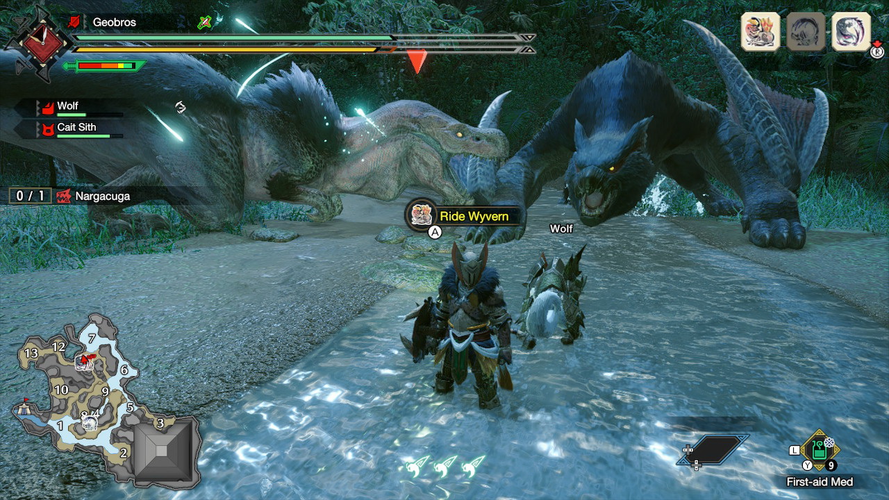 Πριν ξεκινήσετε την περιπέτειά σας καλό θα είναι να ασχοληθείτε με τα Training Quests, τα οποία δίνουν πάρα πολλές χρήσιμες πληροφορίες, όπως για τις κινήσεις του χαρακτήρα και πως θα εξοντώσετε ή θα αιχμαλωτίσετε ένα από τα τέρατα των αποστολών. Εκεί θα μάθετε και μία από τις πιο χρήσιμες λειτουργίες, το Wyvern Riding, που σας δίνει τη δυνατότητα να καβαλήσετε ένα από τα τέρατα για συγκεκριμένο χρονικό διάστημα. Υπάρχουν βέβαια ορισμένες προϋποθέσεις για να τεθεί ένα τέρας σε αυτή την κατάσταση, όπως οι πολλαπλές επιθέσεις silkbind, που το αιχμαλωτίζουν ανάμεσα σε ιστούς μεταξιού και σας δίνουν την ευκαιρία να ανεβείτε πάνω στο ζώο. Όσο είστε στην πλάτη του τέρατος μπορείτε να του κάνετε αρκετά μεγάλο damage, συνήθως μεγαλύτερο από εκείνο με τη χρήση όπλου, αφού χρησιμοποιείτε τη δύναμή και τη μάζα του εναντίον του. Μπορείτε για παράδειγμα να το οδηγήσετε με μεγάλη ταχύτητα ενάντια σε έναν τοίχο η σε ένα μεγάλο αντικείμενο ή ακόμα και να το χρησιμοποιήσετε για να αντιμετωπίσετε ένα άλλο μεγάλο τέρας. Υπάρχει και μία μπάρα ενέργειας η οποία γεμίζει όσο επιτίθεστε και ξεκλειδώνει μία πολύ δυνατή επίθεση του ζώου, η οποία επιφέρει ιδιαίτερα μεγάλο damage. Θα δείτε αρκετά συχνά συγκρούσεις μεταξύ μεγάλων τεράτων μέσα σε μία περιοχή, ή μπορείτε ακόμα και να τις επιδιώξετε οδηγώντας το ένα τέρας στο άλλο.