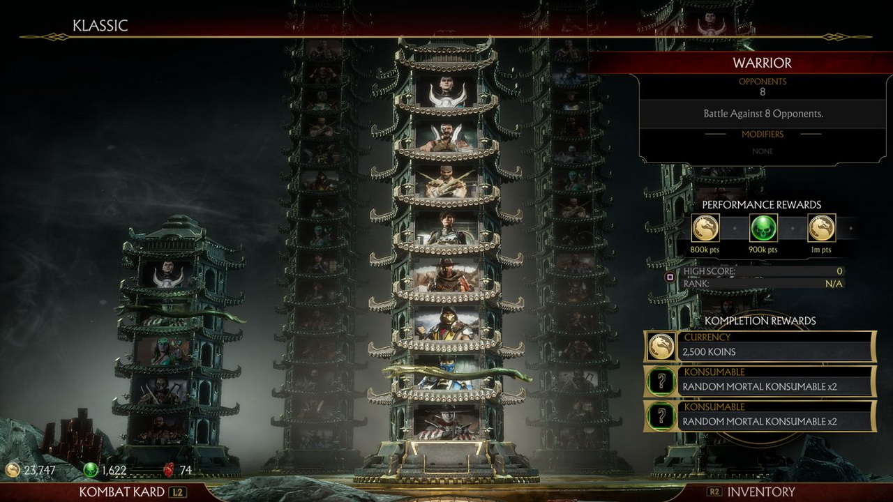 Το story mode του Mortal Kombat 11 είναι ο πιο γρήγορος τρόπος να πάρει κανείς μια ιδέα από τον κάθε χαρακτήρα. Αυτή είναι και η πρώτη φορά που βλέπουμε θηλυκό boss στη σειρά, που ακούει στο όνομα Kronika (Keeper of Time), την οποία υπακούει το Ark of Time, δίνοντάς της έτσι τη δυνατότητα να κάνει τον ίδιο το χρόνο παιχνιδάκι της, δημιουργώντας ή και καταστρέφοντας timelines. Η δυσκολία αυξάνεται πολύ αργά, όμως αν τα πράγματα ζορίσουν αρκετά υπάρχει πάντα η δυνατότητα αλλαγής της προς το ευκολότερο. Το… ζουμί όμως είναι το Towers Of Time. Ο παίκτης διαλέγει πύργο και αντιμετωπίζει διαφορετικό αριθμό εχθρών, αντιμετωπίζοντας διαφορετικού τύπου εμπόδια ταυτόχρονα (poison, φωτιά, διπλό damage κ.ά.) στα οποία έρχεται να βοηθήσει μια ποικιλία από consumables. Πριν το κάθε ματς υπάρχουν τρία slots για να φορτωθούν με διάφορα consumables που βοηθούν τον παίκτη με πολλούς τρόπους, όμως μερικά από αυτά απαιτούν τη χρήση περισσότερων του ενός slot (και πάλι θέμα στρατηγικής). Εδώ παρατηρείται μη ομαλή κατανομή δυσκολίας, ιδιαίτερα προς το σχεδόν ανυπόφορο (ξέρουμε ότι κάπου στον ορίζοντα έρχεται patch για αυτό) grind. Το mode Krypt είναι αυτό που δίνει μια πιο 3D ματιά στον κόσμο του Mortal Kombat, όπου ο παίκτης ξοδεύει game currency για να ανοίξει μπαούλα άλλοτε για χρήσιμο (μέχρι και fatalities) και άλλοτε για «συλλεκτικό» loot.