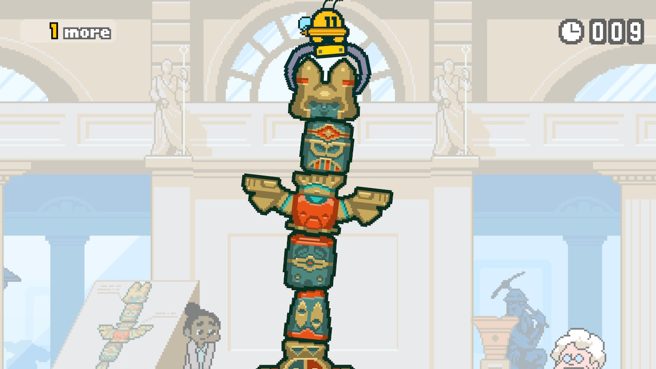 Η έκδοση του Nintendo Switch έχει δύο αποκλειστικές προσθήκες. Η πρώτη είναι ένα νέο επίπεδο με τίτλο "How high can you go?", στο οποίο προσπαθείτε να τοποθετήσετε αντικείμενα και να χτίσετε έναν πύργο μεγάλου ύψους. Η άλλη είναι η επιλογή να παίξετε παρέα με έναν φίλο σας σε τοπικό co-op mode. Δυστυχώς η επιλογή online δεν υποστηρίζεται για την ώρα και θα μπορούσε να προσφέρει το ίδιο επίπεδο διασκέδασης. Συνεργαστείτε λοιπόν με το φίλο σας, σύντροφο, παιδί ή γονέα σας για διπλό εκνευρισμό. Μάλιστα, είναι δυνατή η χρήση δύο χειριστηρίων joy-cons χωρίς να μπαίνετε σε περιττά έξοδα με επί πλέον controller. Η μουσική του παιχνιδιού είναι απλή, με ήχους 8-bit που θυμίζουν tunes από τα κινητά τηλέφωνα της δεκαετίας του '90. Μπορεί να σας δημιουργήσει και εκνευρισμό μετά από κάποιο διάστημα, αφού θα την έχετε συνδυάσει με αποτυχημένες προσπάθειες τοποθέτησης αντικειμένων. Τα γραφικά επίσης απλά, δύο διαστάσεων και ολίγων χρωμάτων. Ο πρωταγωνιστής μάλιστα, αποτελείται από μόλις τρία χρώματα εκτός του λευκού.