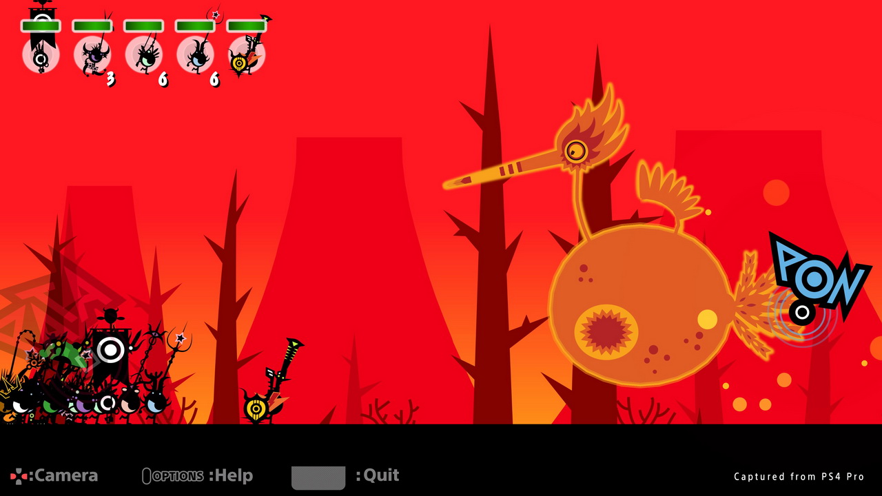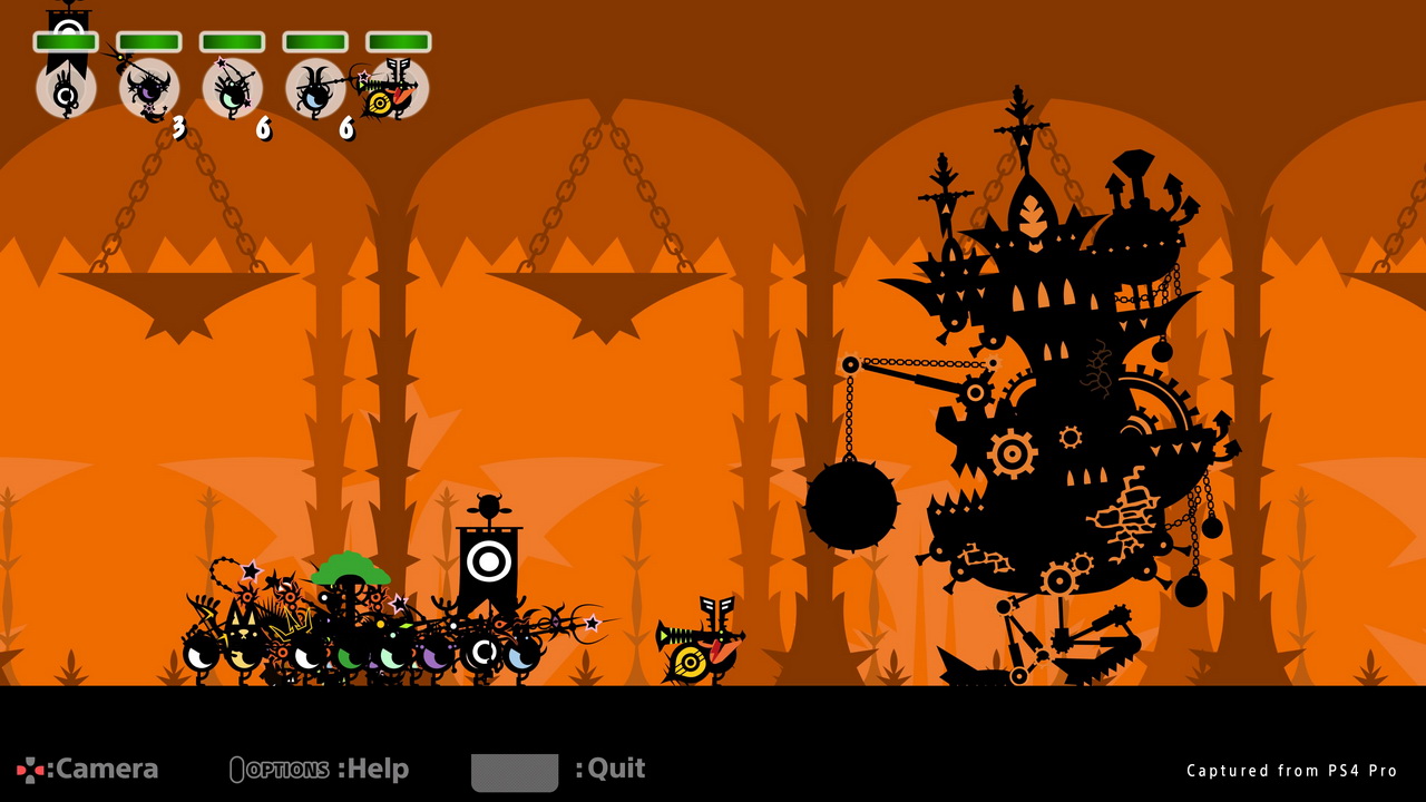 Το Patapon 2, λοιπόν, όπως και το πρώτο (και το τρίτο που ήρθε αργότερα) είχε χαρακτήρα και, όπως μας θυμίζει το Patapon 2 Remastered, ήταν πραγματικά κομμένο και ραμμένο για ένα σύστημα σαν το PSP. Συμπέρασμα που παραμένει δεύτερη φορά στην εποχή μας, αφού δεν διαφέρει από εκείνο στο οποίο οδηγούσε και το Patapon Remastered που προηγήθηκε στο PS4. Στο sequel η κεντρική ιδέα είναι ίδια και η διακοσμητική ιστορία συνεχίζει από εκεί που έμεινε η πρώτη, έτσι ακριβώς όπως περιμένει κανείς σε τέτοιες περιπτώσεις. Τα Patapon σκορπίζονται στους 5 ανέμους και ο θεός που λατρεύουν και υπακούν (ο παίκτης) πρέπει να τα μαζέψει και να τα οδηγήσει στην αναζήτησή τους για την άκρη του κόσμου. Που να ‘ξεραν ότι είναι στρογγυλή αυτή η τυρόπιτα. Που λέει ο λόγος. Κάθε Patapon έχει το δικό του ρόλο, τις δικές του ιδιότητες, το δικό του τύμπανο κυρίως, αλλά και το εξοπλισμό του. Ο παίκτης, μαζεύοντας τις απαραίτητες πρώτες ύλες από το περιβάλλον, τις μάχες με bosses κ.λπ., μπορεί να φτιάξει αντικείμενα που βελτιώνουν την απόδοση κάθε Patapon. Η διαδρομή ξεκινά με δύο είδη τυμπάνων, αλλά στην πορεία προστίθενται άλλα δύο, πράγμα που σημαίνει ότι οι διαθέσιμες μελωδίες περιπλέκονται και αυξάνονται. Τι σχέση έχουν οι μελωδίες; Ουσιαστικά με τις μελωδίες ο θεός (παίκτης) δίνει εντολές στα Patapon ώστε να εκτελεστεί η αντίστοιχη κίνηση και μανούβρα. Η υιοθέτηση αμυντικής στάσης, η κίνηση μπρος και πίσω, η επίθεση κ.λπ. εκτελούνται, ουσιαστικά, εν είδη rhythm game. Ο παίκτης χρησιμοποιεί τα face buttons, με το καθένα να αντιστοιχεί σε συγκεκριμένο τύμπανο. Πρέπει να χτυπά, κατά το δυνατόν, την ιδανική στιγμή και να κρατά γενικά ρυθμό. Με τέλεια εκτέλεση ή με συνεχιζόμενη διατήρηση του σωστού ρυθμού τα Patapon μπαίνουν σε κατάσταση Fever και τότε όλες τους οι ιδιότητες, επιθέσεις και άμυνες βελτιώνονται. Το παιχνίδι περιμένει από τον παίκτη να αξιοποιεί το μηχανισμό αυτό, ειδικά σε boss fights, δεν τον αντιμετωπίζει ως μια πιθανή διευκόλυνση παραπάνω στα κατάλληλα χέρια.