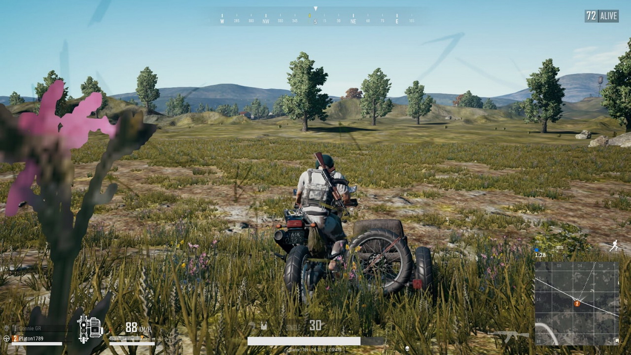 Είναι πιθανότατα η ίδια η συνταγή των Battle Royale, είδος παιχνιδιού που δανείζεται εύστοχα το όνομά του από την ομώνυμη νουβέλα του 1999 του Kōshun Takami. Βλέπετε, η επιβίωση σε ένα χάρτη με άλλους 99 παίκτες, ενώ δεν είναι εύκολη, απαιτεί συνδυασμό τακτικής σκέψης και μετρημένης δράσης, αν θέλετε να φτάνετε ψηλά κάθε φορά και αυτό ωθεί τον παίκτη στην επόμενη προσπάθειά του να είναι ακόμα πιο προσεκτικός. Η προσέγγιση “all guns blazing” εδώ πέρα δεν πιάνει, ούτε προτείνεται σε καμία περίπτωση, δεδομένου ότι η πιθανότητα να βρεθείτε εκτός παιχνιδιού απλά δεν δικαιολογεί το αντίστοιχο ρίσκο ενώ respawn —προφανώς— δεν υπάρχει. Ταυτόχρονα, η αναζήτηση για καλύτερο εξοπλισμό γίνεται αυτοσκοπός, περισσότερο και από την εκμάθηση του μηχανισμού shooting, το οποίο, ειδικά στους δύο μεγαλύτερους χάρτες, Erangel και Miramar, αποτελεί περισσότερο συνοδευτικό παρά το κυρίως πιάτο. Το μοίρασμα του εξοπλισμού που μπορείτε να σηκώσετε γίνεται τυχαία μέσα στους χάρτες του παιχνιδιού, ενώ ο αλγόριθμος στο παρασκήνιο λειτουργεί καλά, βεβαιώνοντας, στα μέτρα του δυνατού, ότι σε κάθε γωνιά θα υπάρχει κάτι για οποιονδήποτε. Φυσικά όποιος ψάξει περισσότερο θα ανταμειφθεί και καλύτερα, ενώ να είστε σίγουροι ότι σε μια εγκαταλελειμμένη στρατιωτική βάση θα βρείτε σίγουρα δυνατότερο εξοπλισμό και δεν θα καταλήξετε να τις παίζετε με τον αντίπαλο με…τηγανιές.