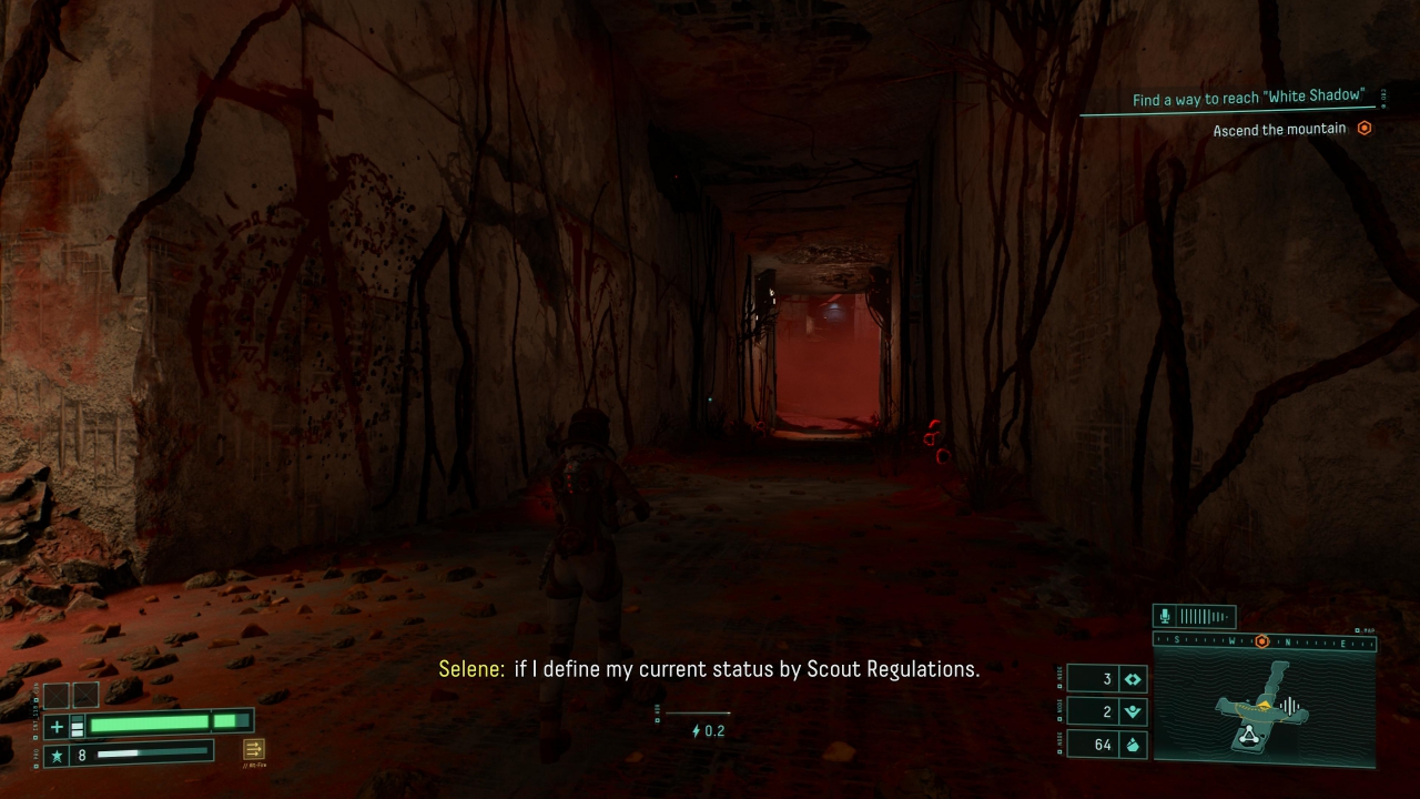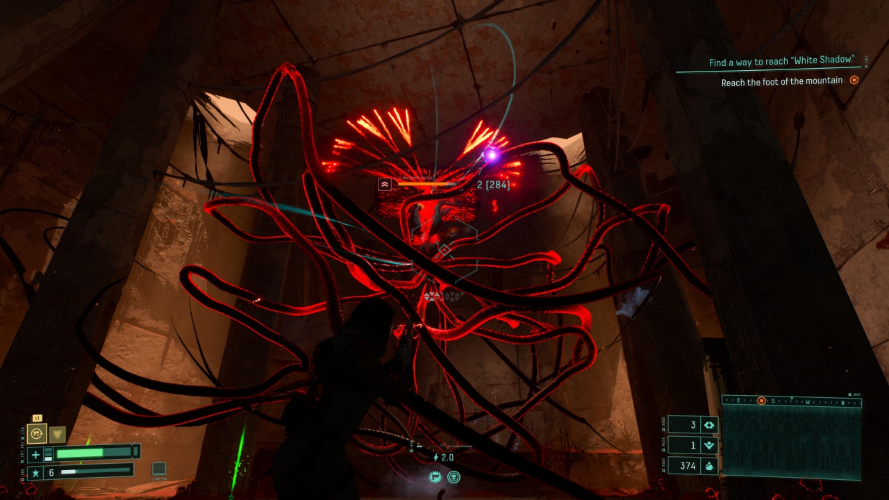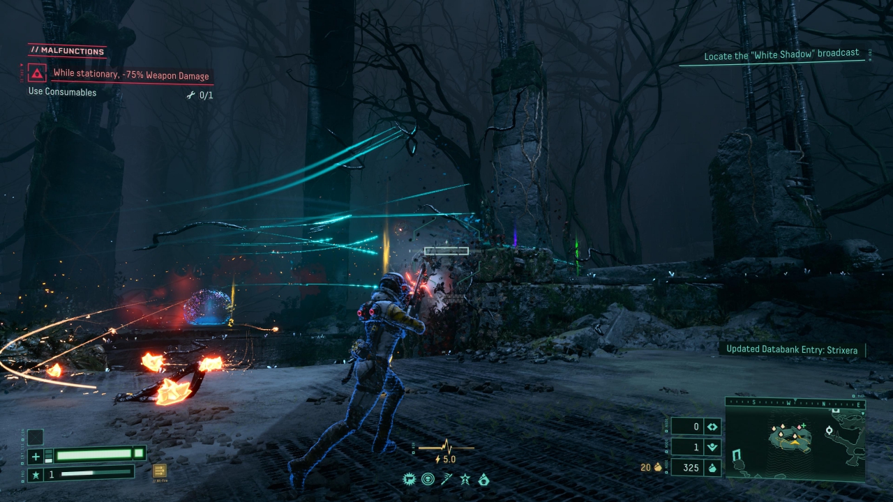Οι σφαίρες δεν τελειώνουν ποτέ, μονάχα οι γεμιστήρες και τότε μπορεί να υπάρξει overload: δηλαδή ο παίκτης να πατήσει το πλήκτρο επίθεσης με τη διαδικασία reload για να κερδίσει χρόνο (κάτι που μπορεί να δίνει οφέλη με το κατάλληλο Parasite, για παράδειγμα). Αν όμως αποτύχει, τότε καθυστερεί λίγο περισσότερο τη διαδικασία (και μπορεί κάλλιστα να έχει επιπτώσεις από αντίστοιχο Malfunction). Εντός κι εκτός μάχης, η Selene έχει στη διάθεσή της και το Dash, όπου με ένα πλήκτρο ενεργοποιείται το jetpack στην πλάτη της και ταχύτατα πηγαίνει λίγα μέτρα πιο πέρα. Αυτό χρησιμοποιείται, φυσικά, για αποφυγή πυρών αλλά και για εξερεύνηση του περιβάλλοντος. Προχωρώντας πιο βαθιά μέσα στον Atropos, ο παίκτης συναντά ολοένα και πιο απειλητικούς εχθρούς και οι μάχες γίνονται πιο δύσκολες. Εδώ είναι που έρχεται το bullet-hell κομμάτι του παιχνιδιού, καθώς πολύ συχνά οι σφαίρες γεμίζουν την οθόνη και η αποφυγή είναι σχεδόν αδύνατη – όποιος κάθεται σταθερός είναι σίγουρα νεκρός. Παρόλα αυτά, ορισμένες φορές ο παίκτης μπορεί να βρεθεί προ εκπλήξεως και να δεχτεί ζημιά που φαντάζει άδικη. Λόγω της φύσης του ως τρισδιάστατο shooter, οι εχθροί και οι κίνδυνοι δεν είναι πάντοτε ορατοί κι έτσι κάλλιστα ένας εχθρός μπορεί να χτυπήσει τη Selene από πίσω, χωρίς να υπάρχει κάποια ένδειξη για αυτό πέρα από το mini map – ποιος παίζει τέτοιου είδους γρήγορο, τρισδιάστατο shooter κοιτώντας τον χάρτη, όμως; Πέραν αυτών, το ξίφος άλλοτε λειτουργεί κι άλλοτε όχι, δηλαδή μπορεί ο μοχλός κίνησης να κατευθύνει τη Selene προς τον εχθρό όμως επειδή δεν είναι στο πεδίο όρασης του παίκτη τότε εκείνη να αστοχήσει με ενδεχομένως σοβαρές επιπτώσεις. Με ένα μόνο χτύπημα να σημαίνει απώλεια Adrenaline και πιθανώς να ενεργοποιήσει κάποιο από τα Malfunctions που έχει ο παίκτης, αν όχι θάνατο, τέτοιες καταστάσεις δεν είναι πολύ συχνές αλλά όταν υπάρχουν προκαλούν εκνευρισμό.