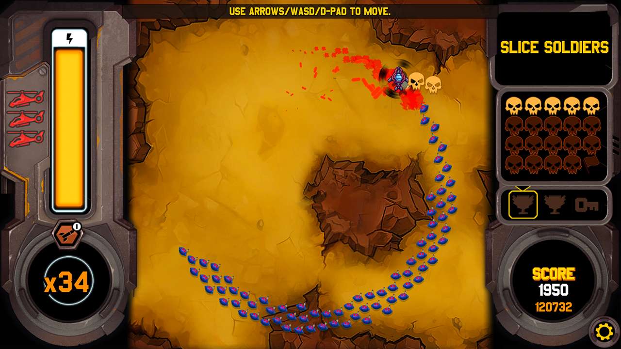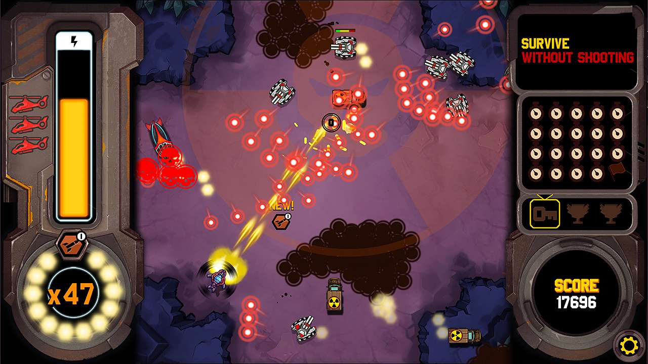 Ένα μόνο χτύπημα αρκεί για να σας εξοντώσει, οπότε η χρήση του προαναφερθέντος πλήκτρου ώστε να γίνετε άτρωτοι για λίγο είναι αναγκαία σε τέτοια σενάρια. Φυσικά αυτή η ενέργεια καταναλώνει συγκεκριμένη μπάρα που αδειάζει γρήγορα και γεμίζει κάπως πιο αργά. Αν δεν θέλετε λοιπόν να πέσετε πάνω στα δύσμοιρα αντίπαλα στρατιωτάκια και να τα κάνετε κομμάτια με αυτήν τη διαδικασία, είναι ο καλύτερος τρόπος για αποφυγή, ακόμα και απόκρουση αντιπάλων και των ριπών τους, οι οποίες τους επιστρέφονται όμορφα και ωραία. Για εσάς ωραία, όχι για αυτούς. Η συγκεκριμένη δυνατότητα, αν και είναι καλά ζυγισμένη ώστε να μην μπορείτε να κάνετε κατάχρηση, μπορεί πολλές φορές να σας ξελασπώσει. Γι’ αυτό λοιπόν πολλά από τα κύματα που θα συναντήσετε στο σύνολο του τίτλου σάς απαγορεύουν τη χρήση της για να μπορέσετε να τα ολοκληρώσετε. Προς τα τελευταία επίπεδα υπάρχουν στιγμές που αυτή η απαίτηση μοιάζει, και είναι, παράλογη λόγω πλήθους αντιπάλων και του ενός μόνο χτυπήματος που αντέχετε. Πόσο μάλλον όταν η χρήση της είναι στην ουσία ο τρόπος για να χρησιμοποιήσετε οτιδήποτε εντός κάθε αρένας προς όφελός σας. Αντίπαλες ριπές, δηλητηριώδη σύννεφα που σας προστατεύουν ή περιπλανώμενα φορτηγά φορτωμένα με πυρηνικά απόβλητα μπορούν να εξοστρακιστούν προς τον αντίπαλο χωρίς καν να ιδρώσει το μυδραλιοβόλο σας.