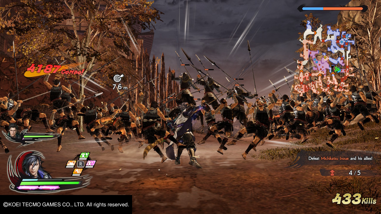 Bέβαια εκτός από τα Musou attacks υπάρχουν και τα Ultimate Skills που μπορούν να πλαισιώσουν και να σπάσουν τη μονοτονία των συνεχόμενων combo με light και heavy attacks. Σε κάθε χαρακτήρα μπορούμε να προσθέσουμε 4 skills τα οποία μπορούν να είναι buffs που ανεβάζουν π.χ. το Defense ή Attack rating του χαρακτήρα ή ειδικές κινήσεις που κάνουν μεγαλύτερο damage ή παραλύουν για λίγα δευτερόλεπτα τον αντίπαλο. Κάποια από αυτά τα skills που λειτουργούν με cooldown θα μπορούσαν να χαρακτηριστούν ως mini-musou attacks τα οποία προφανώς και δεν έχουν μοναδικό σκοπό να σπάσουν τη μονοτονία. Αυτές οι κινήσεις κρίνονται απαραίτητες για παίκτες που κυνηγούν σκορ και battle ratings, γιατί όπως κάθε Warriors game που σέβεται τον εαυτό του, έτσι και το Samurai Warriors 5 στηρίζεται σε μία τελική βαθμολογία μετά την ολοκλήρωση της εκάστοτε πίστας-αρένα. Η βαθμολογία και τα δώρα που αποκομίζουν οι παίκτες εξαρτώνται φυσικά από την απόδοσή τους (απαιτούμενος χρόνος ολοκλήρωσης, combo, secret side missions κτλ.). Όσο ωραίος είναι ο ρυθμός πάντως του παιχνιδιού, τόσο προβληματικό συνεχίζει και είναι το Α.Ι. των εχθρών. Οι αντίπαλοι στρατιώτες δίνουν την αίσθηση σκιάχτρων που περιμένουν να τις φάνε από τους χαρακτήρες μας και σε πολλές περιπτώσεις ο χαρακτηρισμός «γλάστρα» θα ταίριαζε γάντι. Προφανώς και αυτό το φαινόμενο το έχουμε συνηθίσει στα musou games, αλλά όταν το παιχνίδι σου παρουσιάζει νέους εχθρούς με κοντάρια ή ασπίδες, για τους οποίους υποτίθεται ότι πρέπει να χρησιμοποιήσουμε special κινήσεις για να σπάσουμε το μπλόκο, και τελικά μπορούμε απλώς να πηδήξουμε από πάνω τους, αυτό προκαλεί λίγο γέλιο (ή απόγνωση). Η κατάσταση είναι λίγο καλύτερη με τους officers και τα final bosses της εκάστοτε πίστας, αλλά ο υπόλοιπος στρατός έχει τον ρόλο του θεατή ακόμα και σε normal difficulty. Στο μοναδικό τομέα που είδαμε ξεκάθαρη πρόοδο ήταν στο μάζεμα του στρατού γύρω από εμάς. Οι αντίπαλοι συγκεντρώνονται πάνω στον χαρακτήρα που χειριζόμαστε με πολύ καλύτερο και άμεσο τρόπο συγκριτικά με παλαιότερους τίτλους. Αυτό μπορεί να μοιάζει περίεργο σε κάποιον νέο παίκτη ως παρατήρηση, αλλά οι θαμώνες αυτών των τίτλων θα θυμούνται σκηνικά απείρου κάλους, με τους παίκτες να ψάχνουν να βρουν 10-15 random στρατιώτες για να ολοκληρωθεί ένα εύκολο side mission.