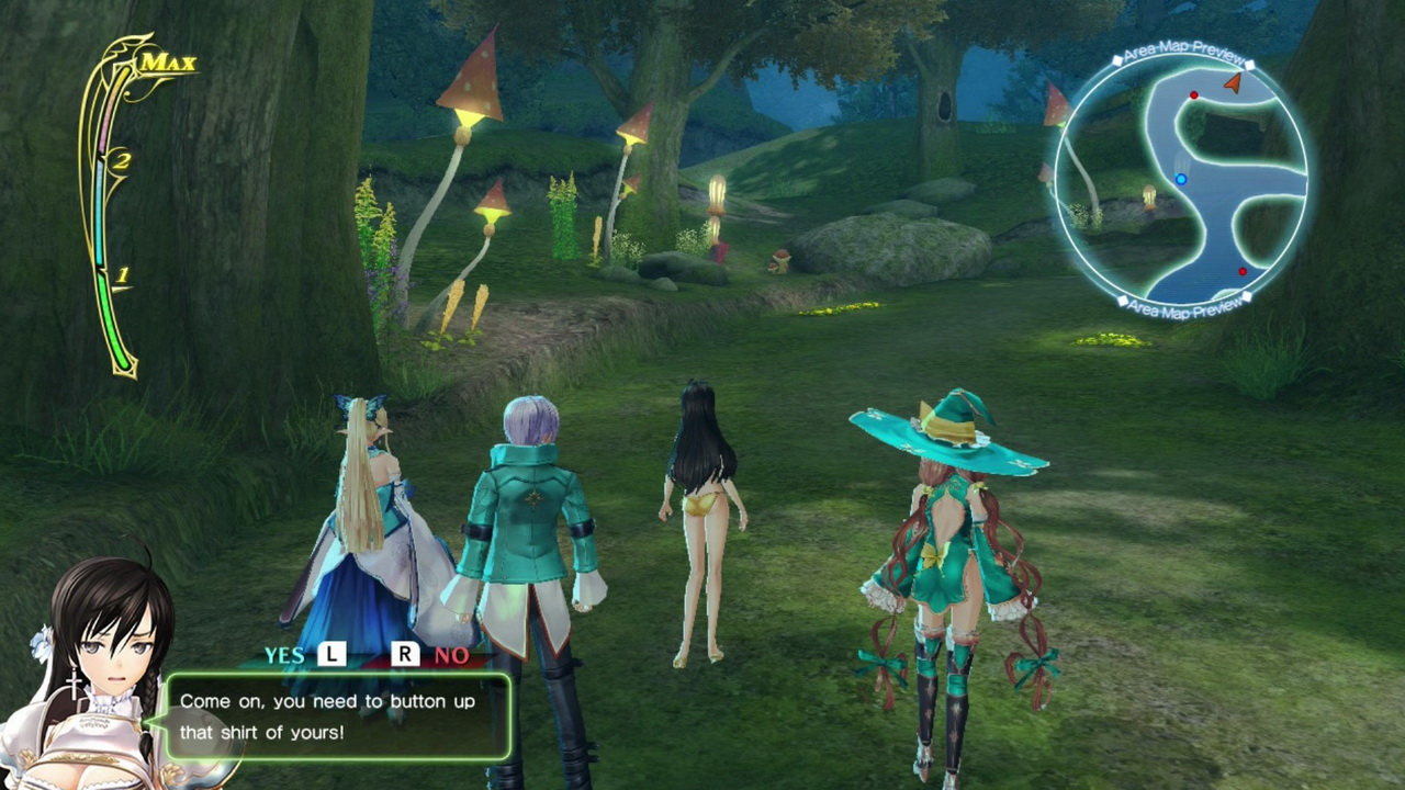 Συνεχίζοντας με τα περίεργα, η σύνθεση του party μπορεί να αλλάξει ανά πάσα στιγμή εφόσον το θέλει ο παίκτης. Παρά ταύτα, αλλαγές γίνονται μόνο μέσω του κανονικού μενού, όχι με συντομεύσεις, εξασφαλίζοντας αχρείαστο και ανούσιο παίδεμα. Κάπου μεταξύ καλών voice overs (σε αγγλικά και ιαπωνικά μάλιστα), σίγουρα θαμπωνόμαστε από την απόλυτη πίστη των δημιουργών στα fetch quests. Τέτοια σας περιμένουν στη μια κεντρική περιοχή και στις λοιπές μικρότερες. Όταν τα ολοκληρώνεται αυτά επανέρχονται, με τους ίδιους quest givers, τους ίδιους ακριβώς διαλόγους, τις ίδιες ακριβώς ανταμοιβές. Είναι σίγουρα κάποιου είδους επιτυχία πως το Grimoire, που επιτρέπει να εξερευνήσουμε διάφορα dungeons τους κανόνες των οποίων μπορούμε να ρυθμίσουμε, έρχεται ως ανακούφιση, ακριβώς επειδή τα κανονικά side quests είναι τόσο εξωπραγματικά επαναλαμβανόμενα. Με το grind να είναι μέρος της συνταγής, τα quests αυτά θα ήταν μονόδρομος αν δεν υπήρχε και το Grimoire. Σκεφτείτε ότι αυτό ήταν DLC για την πρωτότυπη ιαπωνική έκδοση. Σκεφτείτε, επίσης, ότι δεν υφίσταται δυνατότητα για fast travel.