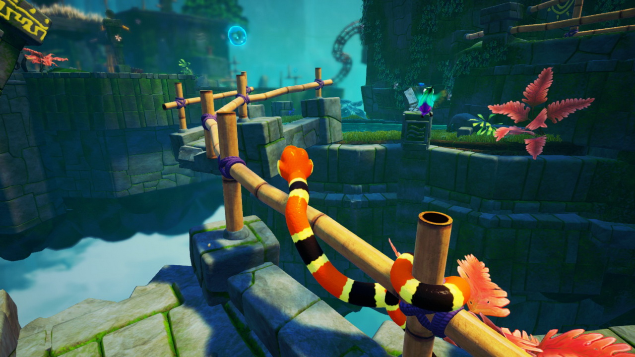 Η δράση χωρίζεται σε 15 επίπεδα που με τη σειρά τους είναι κατανεμημένα σε 4 διαφορετικούς, θεματικούς κόσμους. Τα γραφικά και τα μουσικά ακούσματα αποπνέουν αίσθηση ζούγκλας στην οποία αναμένεται να εμφανιστεί από στιγμή σε στιγμή και ο Ταρζάν. Η ατμόσφαιρα πλησιάζει το ιδανικό. Δεν φτάνει όμως. Ούτε και οι δύο κατηγορίες collectibles προσφέρουν κάτι ουσιαστικό, πέρα από τα τρόπαια για τους κυνηγούς του είδους και μια ευκαιρία για περισσότερη εξερεύνηση. Ειδικά για να μπορέσει να συγκεντρώσει κάποιος τα πέντε νομίσματα σε κάθε επίπεδο, πρέπει να είναι απόγονος του Indiana Jones, παγκοσμίου φήμης ακροβάτης και να έχει βρει το κατάλληλο φάρμακο για τις κράμπες στα δάχτυλα.Αν και το Snake Pass διαφημίζεται ως τίτλος με κλιμακωτή δυσκολία, προσιτός για όλες τις ηλικίες, κάτι τέτοιο δεν ισχύει σε καμία περίπτωση. Η γεύση που τελικά μένει είναι αυτή μιας καλής και πρωτότυπης ιδέας που χάθηκε στην υλοποίηση. Θυσία στο βωμό της βιασύνης και της προχειρότητας. Δεν έχει να κάνει με τη μικρή διάρκεια του παιχνιδιού. Έχει να κάνει με το πόσο σε λάθος κατεύθυνση κινείται η ομάδα ανάπτυξης και πόσο επιφανειακά έχει αντιμετωπίσει κάποια πράγματα. Για παράδειγμα, ναι μεν μαθαίνουμε ότι ο Noodle αρέσκεται σε υπνάκους κάτω από τον καυτό ήλιο, όμως αυτό απλά παραμένει μια άχρηστη πληροφορία. Δεν γίνεται η παραμικρή προσπάθεια για εκμετάλλευση προς όφελος του gameplay. Δυστυχώς, η Sumo Digital έβαλε τα χέρια της και έβγαλε τα μάτια της. Αν θέλει κάποιος να κάνει δύσκολη τη ζωή των παικτών, τουλάχιστον, ας μάθει να το κάνει με το σωστό τρόπο.
