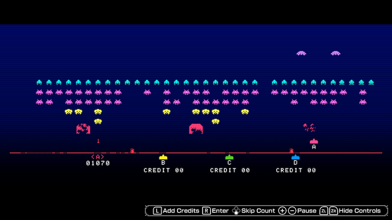 Φτάνουμε και στο Arkanoid vs Space Invaders. Ξεχάστε την τηλεόραση, ξεχάστε το αγαπημένο σας controller. Γυρνάτε την οθόνη του Nintendo Switch κάθετα και ελέγχοντας το Vaus προσπαθείτε να αποκρούσετε την εξωγήινη εισβολή. Δεν υπάρχει μπαλάκι αυτή τη φορά. Έχοντας στη διάθεσή σας μόνο touch controls, σέρνετε το Vaus στην οθόνη επιστρέφοντας στους αντιπάλους τα πυρά τους. Το παιχνίδι αποτελείται από δεκάδες επίπεδα και σε κάθε ένα θα πρέπει να ολοκληρώσετε συγκεκριμένους στόχους, σε μικρό χρονικό διάστημα, όπως η εξολόθρευση συγκεκριμένου αριθμού εξωγήινων. Ο χρόνος αποτελεί συχνά μοχλό πίεσης και πολλές φορές χρειάζεται αρκετή τύχη για να ολοκληρωθούν οι αποστολές. Όσο προχωράτε ξεκλειδώνουν πιλότοι για το Vaus, ο καθένας με τα δικά του perks. Πρόκειται για χαρακτήρες από franchises της Taito, όπως ο Bub και ο Bob από το κλασσικό Bubble Bobble. Όσες φορές και αν αποτύχετε, άλλες τόσες φορές μπορείτε να συνεχίσετε από το ίδιο σημείο και επιπλέον, δεν είναι απαραίτητο να το πάρετε σερί από την αρχή ως το τέλος. Τα power ups είναι και εδώ πολλά και μάλιστα δίχως αυτά δεν θα μπορέσετε να επιβιώσετε. Σημαντικό και μοναδικό παράπονο το γεγονός πως λόγω του τρόπου χειρισμού, πολλές φορές θα ψάχνετε γύρω γύρω από το δάχτυλό σας για να εντοπίσετε τη θέση του Vaus.