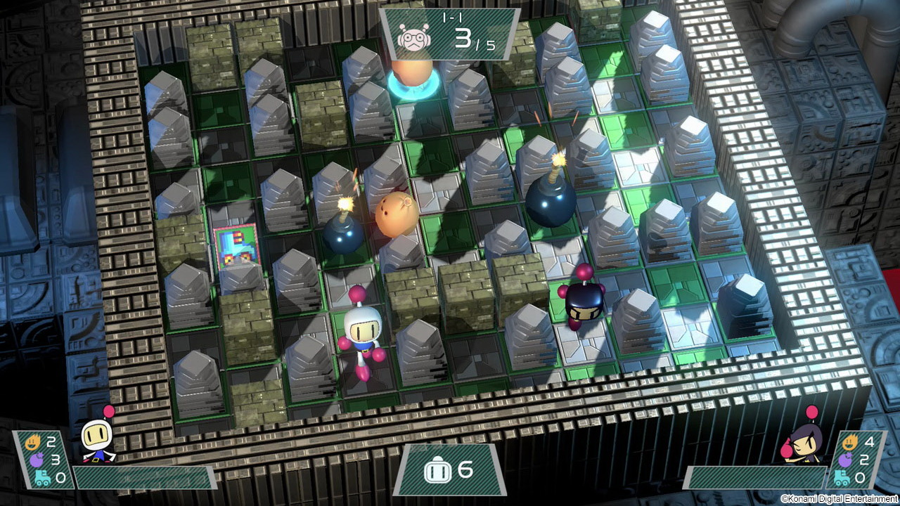 Ευτυχώς το τελευταίο είδος “αποστολών” αποτελεί μειοψηφία. Αυτά ισχύουν για 8 επίπεδα από κάθε δεκάδα. Το ένατο σε κάθε σετ είναι αναμέτρηση με αντίπαλο bomberman και το δέκατο είναι κανονικό boss fight, αφού ο προηγούμενος ηττημένος μεταμορφώνεται σε τεράστιο ρομπότ που πρέπει να αποδυναμώσουμε πρώτα πλήττοντας συγκεκριμένα σημεία, πριν δημιουργηθεί άνοιγμα για…massive damage. Στο λανσάρισμα πάντως δεν υπήρχαν επίπεδα δυσκολίας. Με την τεχνητή νοημοσύνη να είναι αρκετά σατανική, ας πούμε ότι το κλίμα δεν ήταν το καλύτερο για τους νέους παίκτες. Με πρόσφατο update πάντως προστέθηκαν επίπεδα δυσκολίας, οπότε παύει να είναι μόνη σωτηρία η συμμετοχή δεύτερου παίκτη σε κάποια σημεία.