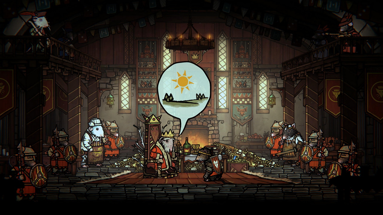 Ο ήχος παίζει σημαντικό ρόλο για το Tails of Iron, αφού πέρα από τα συμπαθητικά ατμοσφαιρικά κομμάτια που παίζουν στο background, οι developers επέλεξαν και μία ιδιαίτερη προσέγγιση στον τομέα της αφήγησης. Οι χαρακτήρες δεν ακούγονται μέσω κανονικής ομιλίας, αλλά με φωνές που μοιάζουν με ήχους φλογέρας και αυτά που θέλουν να πουν μεταφέρονται μέσω εικόνων που θυμίζουν κόμικς. Την αφήγηση την αναλαμβάνει η φωνή του αγαπημένου Doug Cockle, του Witcher της καρδιάς μας, ο οποίος κάνει εξαίρετη δουλειά. Μπορεί η ιστορία του τίτλου να μη παρουσιάζει κάποιο αξέχαστο σενάριο ή τρομερές συγκινήσεις, αλλά ο ταλαντούχος voice actor που αγαπήθηκε στα παιχνίδια της CD Project, μεταφέρει με εξαίρετο τρόπο την ιστορία του Tails of Iron, κάνοντας τον χρήστη να νιώθει ότι του διαβάζουν ένα παραμύθι. Γίνεται εύκολα αντιληπτό ότι ο συνδυασμός εικαστικού και ηχητικού περιβάλλοντος αποτελεί το δυνατό χαρτί του τίτλου, συνθέτοντας μία πανέμορφη μεσαιωνική περιπέτεια φαντασίας. Βέβαια, επειδή δεν πρόκειται για κάποιο visual novel, σημαντικό είναι προφανώς το gameplay του τίτλου το οποίο έχει επίσης μία σκληρή προσέγγιση. Στις πρώτες πραγματικές μάχες καταλάβαμε αμέσως ότι πρόκειται για ένα project όπου θα φάμε αρκετό ξύλο. Η Odd Bug επέλεξε μία soulslike προσέγγιση όπου ο παίκτης πρέπει να μάθει να χειρίζεται ξεκάθαρα τον χαρακτήρα. Ένα κουμπί για light attack, ένα για block με την ασπίδα, ένα για heavy attack με το two handed weapon και φυσικά ένα button για γρήγορη αποφυγή. Το να μάθουμε τον χαρακτήρα είναι το πρώτο βήμα, το δεύτερο είναι να μάθουμε τα patterns των επιθέσεων όλων των αντιπάλων και όχι μόνο των bosses. Η αρχή μπορεί να φανεί βουνό σε αρκετούς παίκτες, αλλά όσο προχωράει η ιστορία και αναβαθμίζεται το gear, τα πράγματα γίνονται αισθητά καλύτερα.