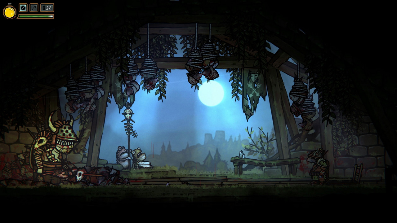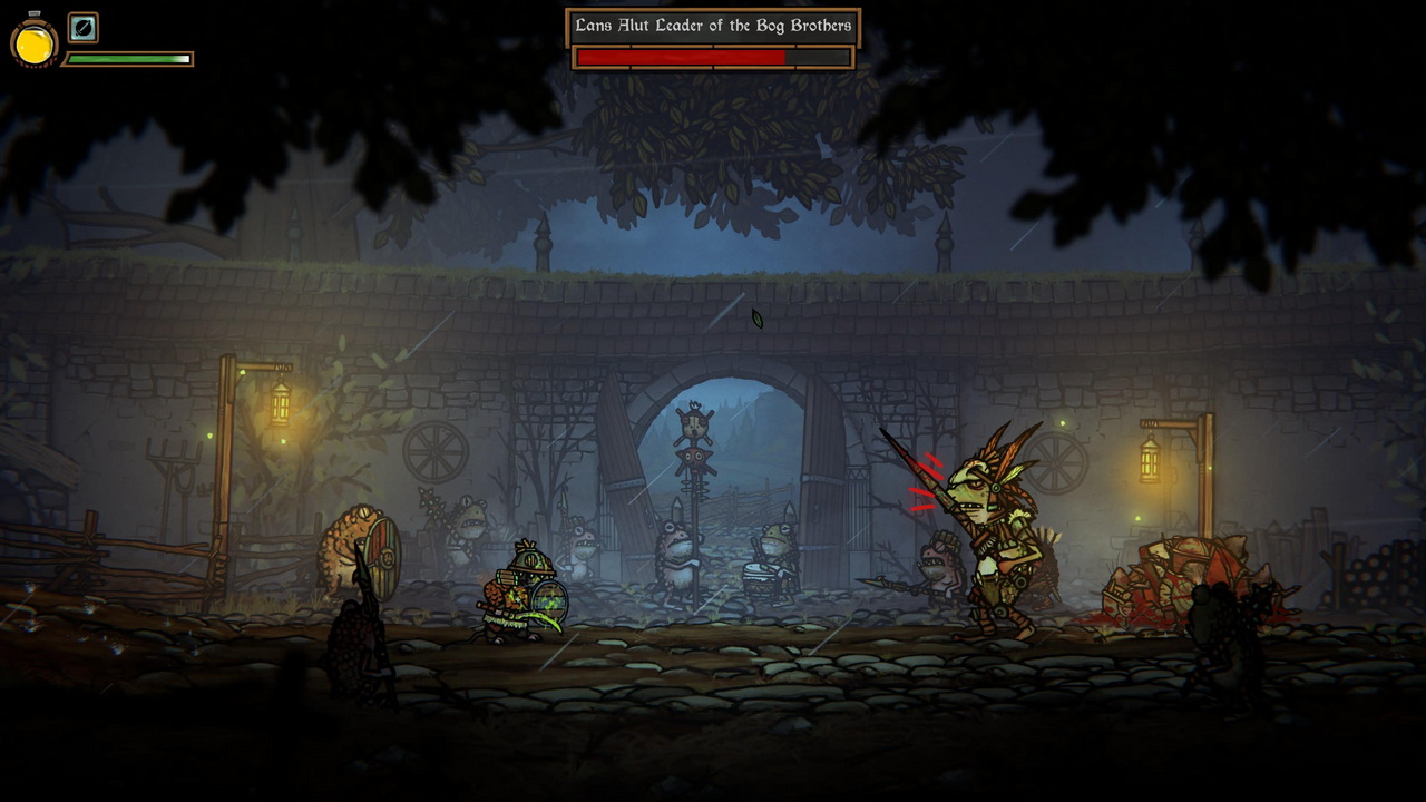 Η πραγματικότητα είναι αρκετά διαφορετική από τα πρώτα κιόλας λεπτά, αφού το indie studio Odd Bug αποφάσισε να φτιάξει κάτι παραπάνω από ένα παιδικό παραμύθι. Το Tails of Iron μπορεί να μην παρουσιάζει ένα horror στοιχείο ή αποκλειστικά σκληρές εικόνες, αλλά βασίζεται σε μία σκοτεινή ατμόσφαιρα η οποία έχει και μία άλφα βαρβαρότητα στα πλαίσια ενός παιχνιδιού που διαδραματίζεται στο μεσαίωνα. Τα σπαθιά, οι ασπίδες, οι αποκεφαλισμοί και το κλασικό πράσινο αίμα σε χαρακτήρες που ανήκουν σ’ ένα φανταστικό τοπίο αποτελούν τους πυλώνες της βάσης του παιχνιδιού, το οποίο κερδίζει πολλά από το γενικότερο εικαστικό του. Το μικρό στούντιο επέλεξε μία 2D οπτική και γραφικά που είναι σχεδιασμένα στο χέρι και όλη αυτή η ζεστασιά του παραμυθένιου εικαστικού μεταφέρεται και στον χρήστη. Ο τίτλος τεχνικά τρέχει απροβλημάτιστα, αλλά πρόκειται και για ένα οπτικό αποτέλεσμα χωρίς μεγάλες απαιτήσεις από τις κονσόλες και συγκεκριμένα το PlayStation 5. Παρ’ όλα αυτά, αξίζει να αναφέρουμε ότι πέρα από ένα μικρό bug με τον ήχο που μας έτυχε μία φορά μετά την έναρξη του παιχνιδιού από το rest mode της κονσόλας, δεν αντιμετωπίσαμε κανένα πρόβλημα που να μας χάλασε την εμπειρία.