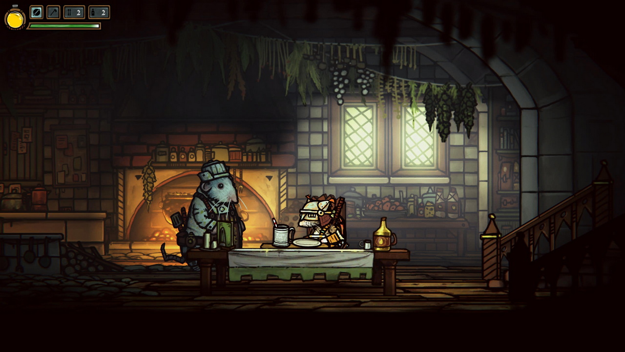 Μακάρι να βλέπαμε τις ίδιες φρέσκιες ιδέες και στο θέμα inventory και στατιστικών των όπλων, το οποίο είναι πολύ basic και αρκετά περιορισμένο. Ναι, υπάρχουν πολλά διαφορετικά όπλα, αλλά η χρήση τους και τα στατιστικά τους κάνουν απλώς τα βασικά. Ο μηχανισμός του βάρους και του defence stat έχει ένα ενδιαφέρον, όπου ο παίκτης καλείται να βρει την ισορροπία ανάμεσα στον συνδυασμό light armor και μεγάλο flexibility και στον συνδυασμό με βαριές πανοπλίες, high defence αλλά και ένα δυσκίνητο χαρακτήρα. Παρ’ ότι δοκιμάσαμε αρκετούς συνδυασμούς κατά την διάρκεια της 8ωρης περίπου περιπέτειας, θεωρούμε ότι ένας χαρακτήρας με μέτριο προς ελαφρύ βάρος έχει ξεκάθαρο προβάδισμα σε συγκεκριμένα boss fights. To Tails of Iron ακολουθεί προφανώς μία συγκεκριμένη πορεία στο βασικό του storyline, αλλά υπάρχουν και κάποια sidequests τα οποία προσφέρουν έξτρα διάρκεια αλλά και κάποια εξτραδάκια όπως όπλα ή αναβαθμίσεις του χαρακτήρα. Και σε αυτόν τον τομέα οφείλουμε να ομολογήσουμε ότι οι developers ακολούθησαν ένα πολύ τυπικό σχέδιο τύπου «πηγαίνω στο σημείο άλφα, σκοτώνω, επιστρέφω για το reward» το οποίο είναι άκρως επαναλαμβανόμενο. Από την άλλη, τα εν λόγω sidequests έχουν συμπληρωματικό χαρακτήρα, δεν κλέβουν πολύ από τον χρόνο του χρήστη, οπότε δεν ενοχλεί και τόσο πολύ. Υπήρχε πάντως σίγουρα χώρος για να επεκταθεί ο σχεδιασμός των έξτρα quests, μιας και ο κόσμος που έστησαν οι developers προσέφερε μία βάση για πιο δυνατά concepts, ειδικά από την στιγμή που υπάρχουν πετυχημένοι μηχανισμοί που ρολάρουν καθ’ όλη την διάρκεια του παιχνιδιού.