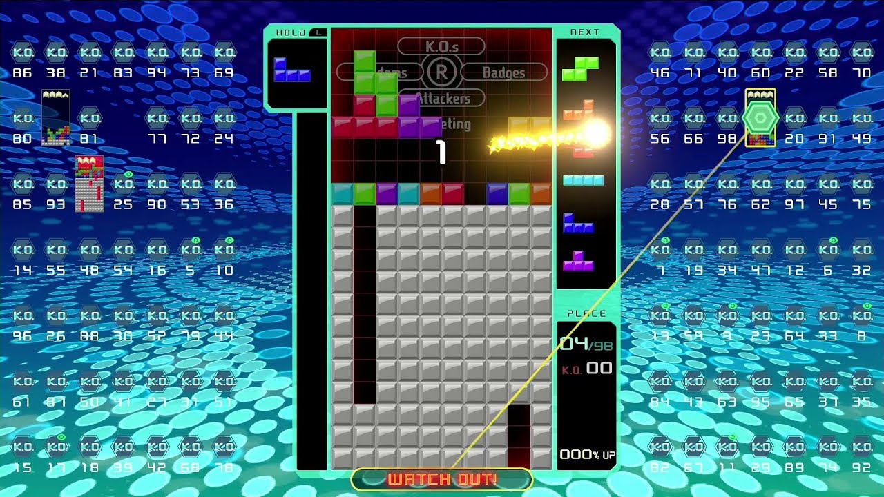 Η σκέψη ήταν απλή. Παίρνουμε την τρέλα του Battle Royale και την φέρνουμε στο παραδοσιακό gameplay του Tetris. Αυτό. Τέλος. Δεν υπάρχουν περίτεχνοι μηχανισμοί, δεν γίνεται προσπάθεια εντυπωσιασμού, δεν υπάρχει κάτι που να τραβάει το ενδιαφέρον από τον πυρήνα. Το Tetris 99 είναι ακριβώς αυτό. Ένα παραδοσιακό Tetris στο οποίο συμμετέχουν 99 παίκτες. Όλα μαρτυρούν την επιδιωκόμενη απλότητα. Τα γραφικά, η μουσική (που δεν πρόκειται να ξεκολλήσει ποτέ από το μυαλό του παίκτη) και η αισθητική έρχονται απευθείας από τη δεκαετία του 1980, πειραγμένα ελάχιστα για τους καλομαθημένους σύγχρονους gamers. Οι μηχανισμοί είναι αυτοί που όλοι γνωρίζουν. Δημιουργία πολλών γραμμών, δυνατότητα για hold, πέταγμα «σκουπιδιών» στους αντιπάλους. Ο στόχος ένας: να παραμείνει ο παίκτης ζωντανός μέχρι το τέλος. Εύκολο; Εννοείται πως όχι. Ειδικά αν κάποιος τρέφει αυταπάτες για το πόσο καλός παίκτης Tetris είναι. Η σφαλιάρα πέφτει άμεσα και πολύ απότομα. Η ανάγκη για ανασύνταξη είναι μάλλον επιτακτική.