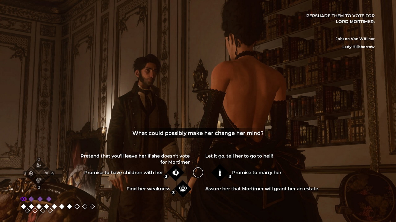 Μέχρι στιγμής υπάρχουν αρκετές επιλογές που δίνουν διαφορετικές πορείες στο ταξίδι του πρωταγωνιστή, αλλά η γενική εικόνα έχει ως εξής. Ο Louis de Richet φτάνει στο νησί προς αναζήτηση της μητέρας του, και πολύ γρήγορα γίνεται μέρος μιας σκακιέρας (σ.σ.: see what I did there?) με τα πιόνια, όπως αποδεικνύεται, να έχουν στηθεί προσεκτικά εδώ και καιρό και το τρόπαιο να μην είναι άλλο από την έκβαση των σημαντικότερων γεγονότων στην ανθρώπινη ιστορία. Αυτή η παρτίδα είναι μια από πολλές και, όπως αποκαλύπτεται, η ανθρωπότητα πρακτικά κυβερνάται από δαίμονες, με τους τελευταίους να αποφασίζουν για καθετί σημαντικό και με αυτόν τον τρόπο να διαμορφώνουν οι ίδιοι τον κόσμο γύρω τους, σύμφωνα με τα θέλω και τα πιστεύω τους. Ο Louis μαθαίνει πως ο ίδιος είναι δαίμονας, και μετά από βομβαρδισμό πληροφοριών, πρέπει πολύ γρήγορα να αποφασίσει σε ποιανού το πλευρό είναι και πώς ο ίδιος θα χειριστεί τις νεοαποκτηθείσες δυνάμεις του.