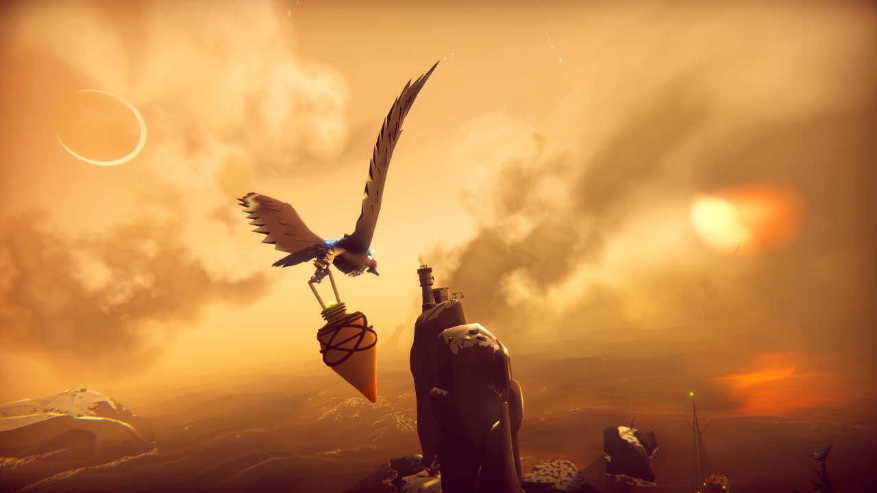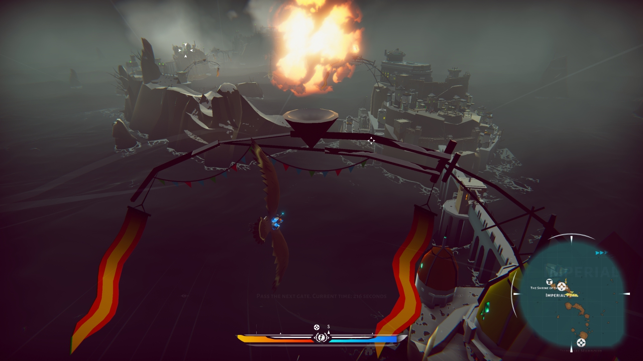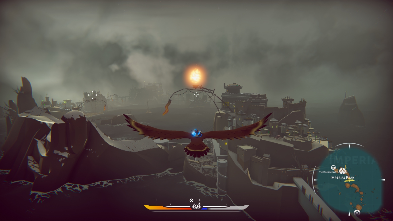 Πρόκειται για ένα παιχνίδι που δύσκολα φεύγει από τη μνήμη κάποιου άπαξ και το δει, πόσω μάλλον όταν το βιώσει από πρώτο χέρι στα 120fps – καθώς είναι ένας από τους τίτλους που υποστηρίζουν τη δυνατότητα σε Xbox Series X. Η ομαλότητα των κινήσεων δένει τόσο αρμονικά με την εικόνα που φαντάζει σαν έργο τέχνης εν κινήσει. Πριν χρόνια, ήταν ασυνήθιστο και πρωτότυπο το να έχουμε cel-shaded τίτλους παρά την κυριαρχία του ρεαλιστικού και μη 3D, αργότερα έγιναν «θαύματα» με pixel art και τώρα, ίσως το Falconeer δείχνει τον δρόμο για κάτι νέο που με αρκετό πειραματισμό μπορεί να παράξει εντυπωσιακά αποτελέσματα. Αν η αισθητική δεν συγκινήσει κάποιον για να κοιτάξει προς το Falconeer, τότε ίσως οι επιρροές του από τα Panzer Dragoon και Crimson Skies να είναι αυτό που θα κεντρίσει το ενδιαφέρον του παίκτη. Χειριζόμενος έναν από τους μαγευτικούς, τεράστιους αετούς, ο παίκτης εμπλέκεται σε εναέριες μονομαχίες έχοντας τον πλήρη έλεγχο της δράσης, από την πτήση έως τα όπλα. Ήταν συνήθεια τα air combat games να τοποθετούν τον παίκτη σε «ράγες» αλλά το Falconeer δίνει τα ηνία στον παίκτη ώστε να πετάει ελεύθερα, να «φρενάρει» με τα γιγαντιαία φτερά, να κάνει βουτιές στο κενό για να διαφύγει ή να αυξήσει ταχύτητα όπως και να πραγματοποιήσει μανούβρες αποφυγής που θα ζήλευε ο Fox McCloud.
