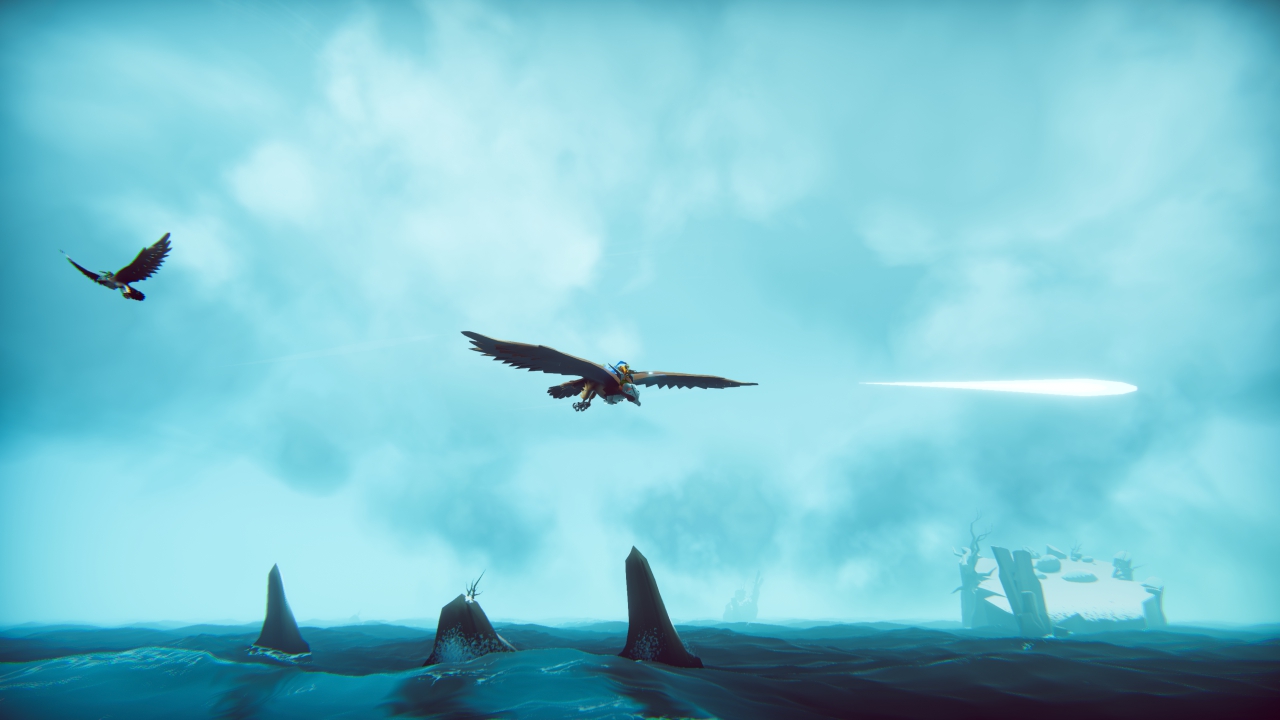 Δύο τεράστια, αχανή μπλε: η θάλασσα κι ο ουρανός. Κι ανάμεσά τους, τεράστια, αρματωμένα πτηνά με τους αναβάτες τους να δίνουν μάχες μέσα στα σύννεφα. Αυτά είναι τα βασικά συστατικά του Falconeer, ενός παιχνιδιού που φτιάχτηκε κατά βάση από έναν άνθρωπο, τον Tomas Sala, με τη σημαντική συμβολή του Benedict Nichols στον ηχητικό τομέα. Το πρώτο πράγμα που θα τραβήξει κάποιον προς το παιχνίδι είναι σίγουρα η αισθητική, καθώς ο Sala προτίμησε να προσπεράσει τα περίτεχνα textures κι αντ’ αυτού να χρησιμοποιήσει ενιαία χρώματα στις επιφάνειες, αφήνοντας στον φωτισμό το δύσκολο έργο του να αναδείξει την καλλιτεχνική επιλογή. Και πράγματι, μέσα στην απλότητά του, το Falconeer δείχνει μοναδικό με έναν τρόπο που δεν έχουμε συνηθίσει.