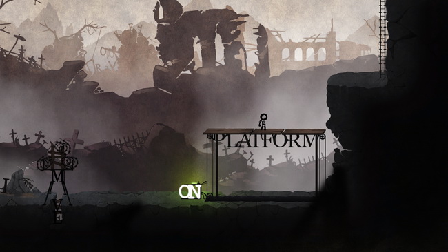 Πριν διαπιστώσετε όλα τα παραπάνω θα δείτε πως ο κόσμος του Typoman έχει ελάχιστους ήχους, κυρίως απειλητικούς, και εκατοντάδες γράμματα. Αυτά είτε είναι διακοσμητικά στοιχεία του επιπέδου, είτε δομικά στοιχεία του gameplay. Ο μόνος που ισορροπεί κάπου ανάμεσα σε αυτές τις δυο έννοιες είναι ο μικρός ήρωας που χειρίζεστε. Ονομάζεται Hero και όλο του το σώμα είναι φτιαγμένο από αυτά τα τέσσερα γράμματα. Ο ίδιος ξεκινά τη ζωή του ως ένα “Ο” που κατρακυλώντας βρίσκει τα υπόλοιπα γράμματα που θα τον κάνουν “Hero” και ξεκινά το ταξίδι του, στο οποίο ποτέ δεν μαθαίνουμε πραγματικά γιατί συμβαίνουν όσα συμβαίνουν. Η σκοτεινή ατμόσφαιρά του και το αίσθημα απόλυτης μοναξιάς που προσφέρει πάντως αρκούν για να επισκιάσουν αυτήν την ανάγκη. Το Typoman είναι στην ουσία ένα καμουφλαρισμένο puzzle game οπότε και η εγκεφαλική λειτουργία είναι απαραίτητη για την ολοκλήρωσή του. Σχεδόν σε κάθε σας βήμα συναντάτε σκόρπια γράμματα τα οποία πρέπει να μπουν σε σειρά για να δημιουργήσετε μια ή περισσότερες λέξεις. Άλλες φορές θα έχετε όλα τα γράμματα άμεσα διαθέσιμα ή θα πρέπει να σκεφτείτε ποια μπορείτε να κάνετε generate από συγκεκριμένα σημεία στο χώρο που το επιτρέπουν. Το να τα βάλετε στη σωστή σειρά είναι αρκετά απλό μιας και μπορείτε είτε να τα κουβαλήσετε/σπρώξετε με τον Hero, είτε να κάνετε την κατάλληλη τοποθέτηση χρησιμοποιώντας την οθόνη του GamePad. Ο δεύτερος τρόπος είναι σίγουρα προτιμότερος μιας και κερδίζετε σε ταχύτητα και ευκολία. Όλα τα στοιχεία απεικονίζονται αρκετά μεγάλα και ξεκάθαρα στην οθόνη του GamePad ώστε να μπορείτε να κάνετε δουλειά δίχως stylus χωρίς κανένα πρόβλημα.