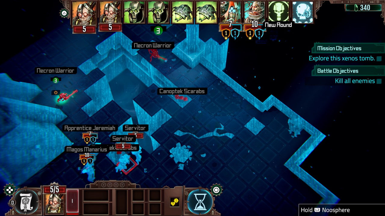 Η εξερεύνηση διεξάγεται όπως θα γινόταν και σε κάποιο επιτραπέζιο παιχνίδι, καθώς δεν βλέπουμε το εσωτερικό κάθε δωματίου, αλλά μας δίνεται μια περιγραφή σε κείμενο και οι πιθανές επιλογές που έχουμε στη διάθεσή μας. Μόνο αν συναντήσουμε Necrons θα μεταφερθούμε στον τρισδιάστατο ισομετρικό χάρτη όπου διεξάγονται οι μάχες. Εδώ τα πράγματα είναι λίγο-πολύ γνώριμα στους φίλους των turn-based strategy games, εφόσον κάνουμε deploy τους Tech Priests μας καθώς και τους αναλώσιμους Servitors και μαχόμαστε σε σειρές εναντίον των Necrons. Μια σημαντική διαφορά είναι ότι δεν υπάρχουν ακριβώς action points, αλλά οι αντίστοιχοι πόντοι λέγονται Cognition Points και χρησιμοποιούνται μόνο για έξτρα κινήσεις και ειδικά όπλα. Οι πόντοι αυτοί αντλούνται είτε από κάποιους οβελίσκους σε κάθε χάρτη είτε σκοτώνοντας εχθρούς είτε από κάποιον εξοπλισμό. Φυσικά, καθώς οι Tech Priests συνεχίζουν την εξερεύνησή τους, τόσο οι μάχες δυσκολεύουν, όπως είναι αναμενόμενο. Η διαφορά στο συγκεκριμένο παιχνίδι είναι ότι ο Tomb World σταδιακά ξυπνά εξαιτίας της παρουσίας της ομάδας μας, πράγμα που σημαίνει ότι κάθε σειρά που ξοδεύουμε ψάχνοντας κάποιο προαιρετικό δωμάτιο και κάθε σειρά που περνάμε σε μάχη καταγράφεται σε ένα αόρατο «ρολόι» το οποίο μετρά αντίστροφα μέχρι ο Silva Tenebris να ξυπνήσει πλήρως και να πλημμυρίσει από Necrons.