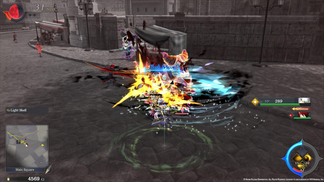 Αυτή η διαδικασία γίνεται σταδιακά, καθώς (σχεδόν) κάθε κεφάλαιο αφορά έναν από τους Monstrums και, όταν ολοκληρωθεί, ο παίκτης όχι απλώς γνωρίζει περισσότερα για το παρελθόν και την προσωπικότητα του καθενός αλλά τους εντάσσει στο party του το οποίο αποτελείται από τρία άτομα. Ένα θετικό στοιχείο είναι πως ο παίκτης, με το πάτημα ενός πλήκτρου, αλλάζει μεταξύ των χαρακτήρων με μηδενική καθυστέρηση – σε σημείο που μπορεί να τους εναλλάσσει κατά τη διάρκεια ενός combo, φυσικά για να έχει πιο εντυπωσιακά αποτελέσματα. Το πλήκτρο αλλαγής χαρακτήρα (O, στο PlayStation) βρίσκεται δίπλα από το πλήκτρο επίθεσης (□) οπότε ακόμη και με το ίδιο δάκτυλο μπορεί να γίνεται η αλλαγή. Μιλώντας για gameplay, το Ys IX: Monstrum Nox είναι action/adventure RPG με έμφαση στην ταχύτητα, τα skills και την αποφυγή/απόκρουση επιθέσεων του εχθρού. Τα τελευταία δύο επιβραβεύονται, μάλιστα, εντός μάχης: το Flash Move (dodge) κάνει τον χρόνο να κυλά πιο αργά για λίγα δευτερόλεπτα ενώ το Flash Guard (parry) εγγυάται πως για λίγα χτυπήματα, το κάθε ένα θα είναι critical hit. Με όλα τα παραπάνω, ο ρυθμός της μάχης δύσκολα σταματάει, όμως για κάποιο λόγο δε γίνεται ποτέ χαοτικός ακόμη κι όταν βρίσκονται πολλοί εχθροί στην οθόνη. Για γρηγορότερο… σκούπισμα, και εφόσον έχει γεμίσει η αντίστοιχη μπάρα μέσω απλών χτυπημάτων, το Boost Mode ενεργοποιείται πατώντας δύο πλήκτρα και χαρίζει αυξημένη ταχύτητα και ζημιά για λίγο χρόνο. Αν τα ίδια πλήκτρα πατηθούν ξανά κατά τη διάρκεια του Boosting, τότε ο χαρακτήρας εξαπολύει το ξεχωριστό του Extra Skill που κάνει τεράστια ζημιά όμως σταματάει το Boosting, οπότε καλό θα ήταν να εκτελείται όταν η μπάρα κοντεύει να εξαντληθεί.