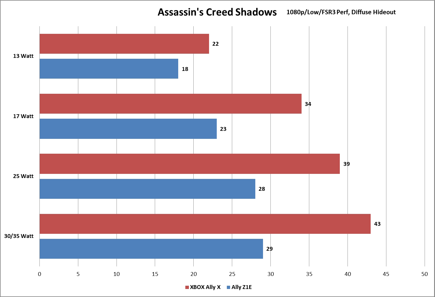 Να σημειώσουμε ότι όλες οι παραπάνω δοκιμές έγιναν με το TDP στα 25Watt. Στο μέγιστο των 35Watt που μπορεί να λειτουργήσει όταν είναι στο ρεύμα η συσκευή οι επιδόσεις αυξάνονται και άλλο, αλλά όχι αναλογικά με την αύξηση ενέργειας. Υπάρχουν δυο ακόμα προφίλ, το silent στα 13 Watt και το Performance στα 17 Watt. Αν δούμε τις επιδόσεις σε αυτά τα δυο προφίλ, μπορούμε να πούμε πως η απόδοσή που προσφέρει σε αυτά το ROG XboxAlly X είναι αντίστοιχη με τα με 15 Watt και 25 Watt αντίστοιχα του ROG Ally, κάτι που σημαίνει ότι το νέο SoC είναι αρκετά αποδοτικότερο. Μάλιστα, πολλά από τα παραπάνω παιχνίδια που αναφέραμε μπορεί κανείς να τα παίξει σχετικά άνετα ακόμα και στα 17Watt, αυξάνοντας αρκετά την αυτονομία της συσκευής. Οι 80Wh της μπαταρίας λοιπόν μπορούν να προσφέρουν από 2 ώρες αυτονομία όταν έχουμε κάποιο AAA παιχνίδι που απαιτεί τα 25Watt TDP (περίπου 38-40 Watt κατανάλωση συστήματος) έως και 10 ώρες όταν παίζουμε indy παιχνίδια, όπου το TDP μπορεί να πέσει ακόμα και στα 5Watt και η συνολική ισχύς στα 8Watt! Πραγματικά, με το ROG XboxAlly X δεν έχουμε καθόλου το φόβο μη ξεμείνουμε και μπορεί κανείς να παίζει άνετα, χωρίς να νοιώθει ότι χρειάζεται δίπλα του μια πρίζα. Ακόμα και οι 2 ώρες είναι μια χαρά για AAA παιχνίδια.
