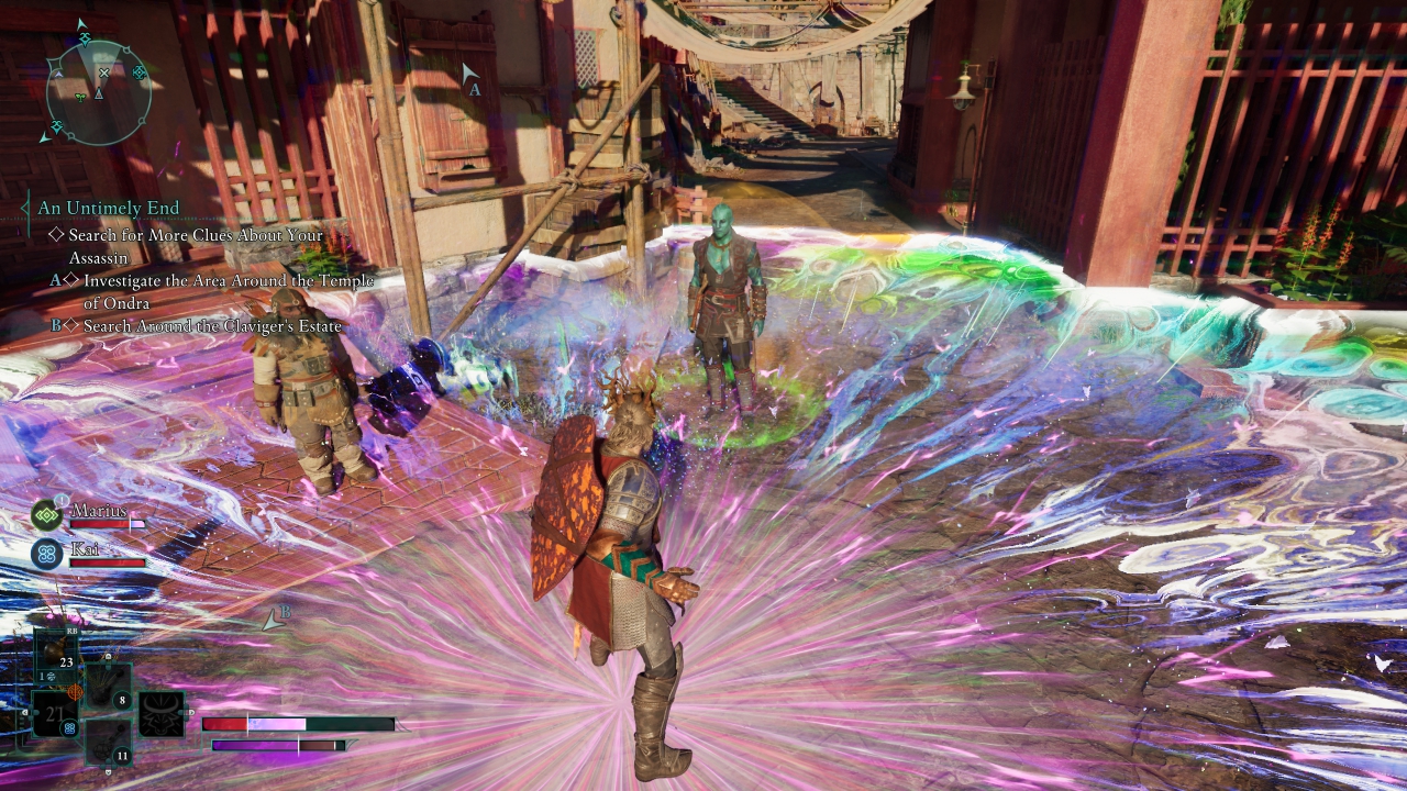Περισσότερες πληροφορίες για τον κόσμο, τις φυλές και τα γεγονότα δίνουν οι companions που συνοδεύουν τον Envoy, είτε στη μάχη είτε στα camps, όπου ανασυντάσσονται. Ο παίκτης παίρνει 2 companions μαζί στις εξορμήσεις, από τους 4 συνολικά που ταξιδεύουν μαζί και μπορεί να συζητάει στα camps. Ο καθένας αντιστοιχεί σε ένα διαφορετικό class, κάπως πιο «αυστηρό» συγκριτικά με όσα μπορεί να πετύχει ο παίκτης, εννοώντας ότι π.χ. ο Kai είναι κάτι σαν tank και η Giatta κάτι σαν healer/buffer. Έχουν δικά τους quests που αν τα «κυνηγήσει» ο παίκτης, θα ανταμειφθεί με καλογραμμένες ιστορίες, επιλογές και έξτρα loot, ενώ πίσω στο camp μπορούν να μιλούν μαζί τους και να μαθαίνουν περισσότερα για τους ίδιους, για τις πατρίδες τους ή να συζητούν για τις επιλογές που έκανε ο παίκτης. Εννοείται πως δεν συμφωνούν όλοι με όλα και δύσκολα μπορεί να κρατηθεί μια ισορροπία. Ο παίκτης έχει τεράστια ελευθερία στα builds, διαλέγοντας skills από τα fighter/ranger/wizard trees συν το Godlike tree, όμως δεν «δεσμεύεται» σε ένα. Έτσι, δοκιμάσαμε έναν fighter με διάφορα tank skills, κάποια ranger skills που ευνοούν το dodge και την ταχύτητα και λίγα wizard skills για να μην περιοριζόμαστε δραματικά στα spells.