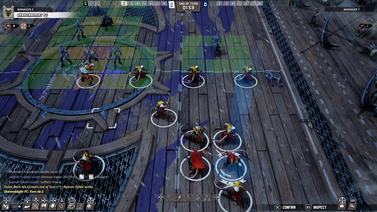 Μέσα σε δύο λεπτά που κρατάει ο γύρος, ο παίκτης πρέπει να κάνει όλες τις κινήσεις του, σαν μια παρτίδα σκάκι. Να ανακαλύψει χώρους, να κάνει κινήσεις, να παίξει άμυνες, να ρισκάρει με τα ζάρια. Στο νέο παιχνίδι, κάθε γύρος κρατάει δύο λεπτά ανά παίκτη, αντί για τέσσερα, κάνοντας μια παρτίδα-αγώνα να κρατάει περίπου μια ώρα. Αυτό εφαρμόζεται πολύ στο online multiplayer, αλλά στο single-player δεν έχει τόσο νόημα, αφού ο παίκτης μπορεί να συνεχίσει να κάνει κινήσεις πολύ μετά το πέρας των δύο λεπτών. Δείχνει περισσότερο σαν κάτι να χάλασε ή το χρονόμετρο να μην έπρεπε να υπάρχει στο Campaign, σαν να ξεχάστηκε εκεί. Κάθε εντολή που δίνει ο παίκτης, για κάθε κίνηση ενός παίκτη, γίνεται με δύο τρόπους: είτε μέσω ενός τροχού (προφανώς σχεδιασμένου για κονσόλες) είτε μέσω μιας οριζόντιας μπάρας επιλογών. Ο τροχός ήταν πιο βολικός, αλλά σίγουρα θετικό το να υπάρχουν επιλογές. Γενικότερα, το μενού ίσως φανεί λίγο χαοτικό στην αρχή, όμως συνηθίζεται γρήγορα, ειδικά για τις ενέργειες που γίνονται στο τερέν – υπάρχει ιστορικό που καταγράφει τις ζαριές, τις ενέργειες και τα αποτελέσματα οπότε δεν χάνεται ποτέ η μπάλα.