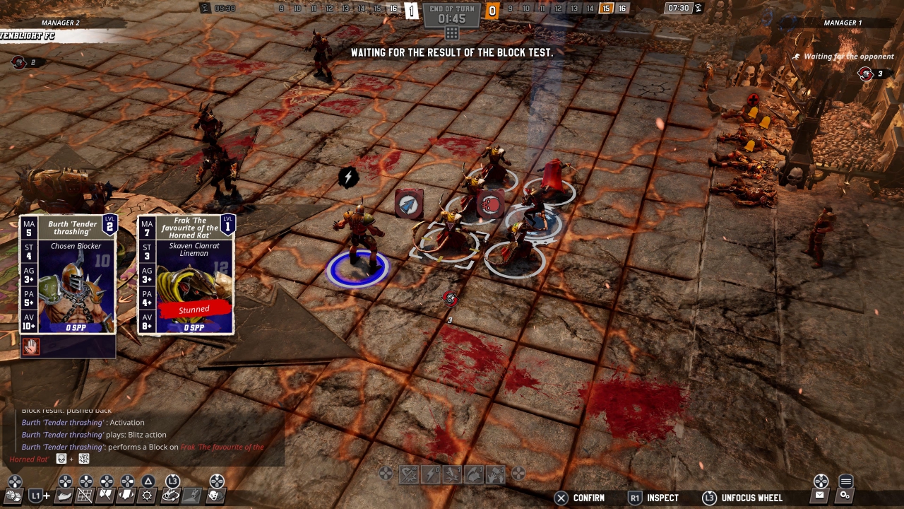 Για παράδειγμα, οι Humans και Orcs είναι αρκετά ισορροπημένες φυλές, έχοντας την δυνατότητα να παίξουν σκληρή άμυνα, να τρέξουν στο γήπεδο, να κάνουν πάσες με την μπάλα και ούτω καθεξής. Από την άλλη, οι παίκτες της ποντικοειδούς φυλής των Skaven είναι πιο εύθραυστοι σε αναμετρήσεις σώμα-με-σώμα, όμως τρέχουν για περισσότερα τετράγωνα και ξεφεύγουν από τους αντιπάλους ευκολότερα. Ο παίκτης παρατάσσει την ενδεκάδα του στον αγωνιστικό χώρο, με την δυνατότητα πλέον να μπορεί να αποθηκεύει την παράταξη άμυνας ή επίθεσης για να την φορτώνει εύκολα σε κάθε γύρο ή αγώνα, κάτι που στο προηγούμενο παιχνίδι δεν γινόταν και γλιτώνει πολύ χρόνο. Καλό θα ήταν να έχει υπολογίσει και «παγκίτες», αφού κατά πάσα πιθανότητα, θα… πέσει ξύλο στο γήπεδο και οι αλλαγές θα χρειαστούν. Σχεδόν κάθε κίνηση στο Blood Bowl γίνεται με ζαριά, εκτός από την απλή κίνηση σε ελεύθερο χώρο. Αν ένας παίκτης θελήσει να ξεμαρκαριστεί από τα τετράγωνα ενός άλλου, να δώσει πάσα, να κάνει επίθεση σε αντίπαλο ή οτιδήποτε άλλο, χρειάζεται ζάρι. Κι αν ο τελικός υπολογισμός στατιστικών και ζαριάς δεν αρκεί για να ολοκληρωθεί η κίνηση, και δεν υπάρχει κάποιο Skill του παίκτη που δίνει δεύτερη ευκαιρία, τότε γίνεται Turnover και ο άλλος παίκτης παίρνει σειρά. Υπάρχει η δυνατότητα για ένα reroll σε μια αποτυχημένη ζαριά, αλλά είναι λίγα (4 με 8) ανά ματς και δεν είναι σοφό να σπαταλούνται.
