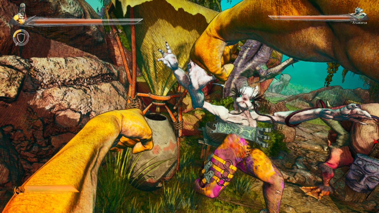 Για τους βετεράνους του Zeno Clash, εδώ υπάρχει μια αλλαγή. Οι μάχες διαδραματίζονται σε προοπτική τρίτου προσώπου, όπως και το παιχνίδι γενικότερα, αντί πρώτου προσώπου. Ωστόσο, ο πυρήνας παραμένει λίγο-πολύ ίδιος, δίνοντας έμφαση στη μάχη σώμα-με-σώμα χωρίς όπλα που χτυπούν από απόσταση. Οι γροθιές και τα πόδια του Pseudo είναι τα καλύτερα όπλα, εξάλλου, αφού ο παίκτης διαλέγει μια από τρεις στάσεις μάχης ξεκινώντας το παιχνίδι και κατά τη διάρκειά του, διδάσκεται ακόμη περισσότερες. Κάθε στάση έχει μια κοινή βάση, όμως στην πράξη διαφέρουν πολύ μεταξύ τους. Για παράδειγμα, η “Boxer Stance” κάνει αυτό που λέει το όνομα – επιτρέπει στον Pseudo να βαράει σαν boxer, με γρήγορες γροθιές και κλωτσιές περιορισμένης εμβέλειας. Το “Spear Stance”, από την άλλη, χρησιμοποιεί πιο αργά αλλά χειρουργικής ακρίβειας, δυνατά χτυπήματα. Η κοινή βάση είναι η εξάρτηση από dodge και parry, καθώς ο Pseudo είναι αρκετά λεπτοφτιαγμένος για να αμύνεται ενάντια σε επιθέσεις από τεράστια τέρατα, αλλά έχει άφθονη τεχνική για να τις αποκρούει. Επομένως, κάθε αναμέτρηση με εχθρό είναι σαν να μπαίνουν στο ρινγκ και να εστιάζουν ο ένας στον άλλο και τίποτα άλλο, οπότε κάθε κίνηση στον χώρο πρέπει να είναι μελετημένη, κάθε parry στον σωστό χρόνο, κάθε επίθεση μετρημένη γιατί μια αντεπίθεση είναι πολύ πιθανή.