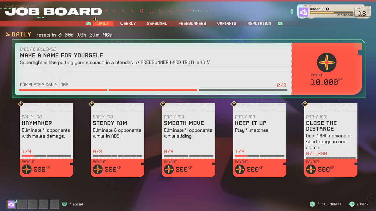 Το Concord λοιπόν, είναι ένα live service Hero Shooter. Η ομάδα ανάπτυξής του, έχει δηλώσει πως το δούλεψε οκτώ ολόκληρα χρόνια, για να το παραδώσει στην πιο επιθυμητή κατάσταση. Μια ξεχωριστή πινελιά είναι τα cinematics, τα οποία έχουν γυριστεί με αληθινούς ηθοποιούς και στολές mocap. Την στιγμή γραφής αυτού του review, έχουμε παρακολουθήσει μόνο το εισαγωγικό βίντεο και το cinematic της πρώτης εβδομάδας του τίτλου. Τα δύο μικρά κλιπ στοχεύουν στο να μας καλωσορίσουν στον κόσμο του Concord και να μας γνωρίσουν λίγο καλύτερα τους χαρακτήρες τους. Η ποιότητα των δύο κλιπ είναι πολύ καλή και φαίνεται πως έχει δοθεί προσοχή στους χαρακτήρες και το περιβάλλον τους. Παρόλα αυτά, ιδιαίτερα μικρής σημασίας είναι τέτοιου είδους βίντεο, σε παιχνίδι του συγκεκριμένου είδους. Το Concord μας καλωσόρισε με ένα βασικό tutorial, το οποίο πολύ κακώς έλειπε από την beta. Με την ολοκλήρωσή του, θα βρεθείτε στο μενού του, μέσω του οποίου μπορείτε να δείτε το Job Board, το οποίο περιέχει πληθώρα ημερήσιων, εβδομαδιαίων και seasonal απόστολών για να φέρετε εις πέρας, με επιβραβεύσεις σε profile reputation και cosmetics. Επιπλέον, από το job board μπορείτε να ξεκλειδώσετε και τα variants των δεκαέξι – προς το παρόν – χαρακτήρων του roster. Για τα variants θα μιλήσουμε παρακάτω. Επιπλέον, μπορείτε να δείτε το Galaxy Guide, το οποίο περιέχει τεράστια πληροφορία για τον κόσμο και το περιβάλλον του Concord. Η συγκεκριμένη λειτουργία είναι εξαιρετική για όσους διψούν για backstory. Το Galaxy Guide περιέχει υπερβολικά πάρα πολλές πληροφορίες, για τους πλανήτες, τους χαρακτήρες, τα διαστημόπλοια, μέχρι και τα μονοπάτια που ακολουθούν οι Freegunners και η Guild για να μετακινηθούν στον γαλαξία. Από αυτό μάθαμε και το γενικό setting του τίτλου.