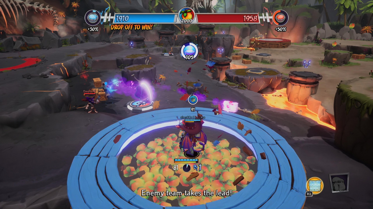 Ο βασικός σκοπός των scorers είναι να μαζέψουν όσο το δυνατόν πιο γρήγορα Wumpa Fruits, τα οποία πρέπει να καταθέσουν στην «τράπεζα» της ομάδας τους. Η πρώτη ομάδα που θα καταθέσει 2000 Wumpa Fruits, κερδίζει το παιχνίδι. Οι Scorers μπορούν να μαζέψουν πολύ περισσότερα φρούτα και να τα καταθέσουν πιο γρήγορα, ενώ έχουν και abilities τα οποία βοηθούν την μετακίνησή τους στους χάρτες και την διαφυγή τους από τους Blockers που τους κυνηγούν. Ο σκοπός των blockers είναι να παρεμποδίσουν τους scorers από το να σκοράρουν τα φρούτα που μάζεψαν. Αυτό μπορεί να γίνει με πολλούς τρόπους, καθώς οι blockers είναι η πιο στρατηγική θέση της ομάδας. Ένας blocker μπορεί να παραμείνει στην τράπεζα της αντίπαλης ομάδας και να σκοτώνει οποιονδήποτε αντίπαλο επιχειρήσει να καταθέσει φρούτα. Εναλλακτικά, μπορεί να κυκλοφορεί στον χάρτη και να σκοτώνει τους scorers την στιγμή που μαζεύουν φρούτα ή relics. Έτσι, μπορούν να πολεμήσουν και τους blockers της αντίπαλης ομάδας, που ενοχλούν τους συμπαίκτες scorers. Κάθε φορά που ένας χαρακτήρας χτυπά έναν άλλον, ο αμυνόμενος χάνει Wumpa. Ο θάνατος, κοστίζει όλα τα Wumpa και όλα τα Relics που κουβαλούσε το θύμα. Οι blockers επίσης, φροντίζουν να ενεργοποιούν με relics όλα τα powerups που θα βοηθήσουν αυτούς και την ομάδα τους να εμποδίσουν την συγκομιδή φρούτων από την αντίπαλη ομάδα. Ένας άλλος τρόπος παιχνιδιού για τους blockers, είναι να μπλοκάρουν τα booster Gems που προσπαθούν να πάρουν οι boosters για να ενισχύσουν την συγκομιδή Wumpa της ομάδας τους.