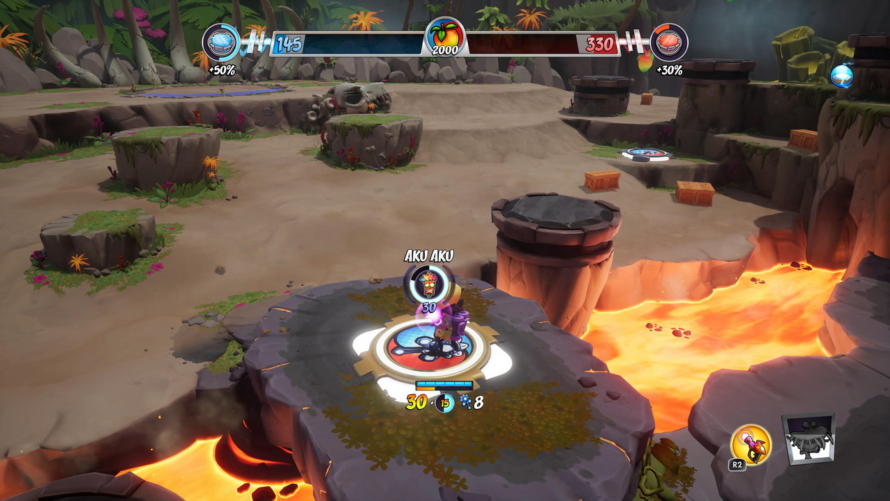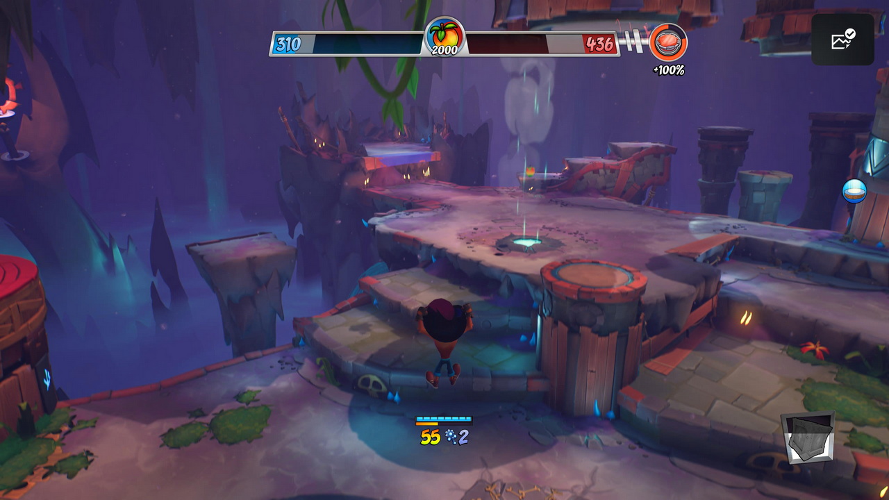 Άλλωστε, ο Crash έχει μια γνωστή τρέλα στο μάτι του, η οποία προσκαλεί τον πανικό στην οθόνη. Ο ίδιος ο κόσμος σε συνδυασμό με το roster, ταιριάζει απίστευτα με το μοντέλο των αμέτρητων σφαλιάρων ανά δευτερόλεπτο, σεισμών, φωτιών, laser, ηφαιστείων και γιγάντιων εκνευρισμένων μασκών με μουρλές δυνάμεις. Οι χάρτες που έχει σχεδιάσει η Toys for Bob, τιμούν την κληρονομιά που άφησαν οι παλαιότεροι τίτλοι και προσθέτουν χαρακτηριστικά για να συνοδεύσουν το νέο μοντέλο. Κάθε χάρτης μάλιστα προσθέτει το δικό του twist στην φόρμουλα, καθώς περιέχει powerups που υπάρχουν μόνο σε αυτόν, τα οποία οι παίκτες ξεκλειδώνουν μαζεύοντας Relics, το δευτερεύον currency της μάχης. Αυτά τα powerups περιλαμβάνουν μανιτάρια που καθυστερούν τους αντιπάλους, μάσκες που κάνουν αόρατους τους χαρακτήρες, UFO που κυνηγάνε και σκοτώνουν αντιπάλους, τυφώνες, καταιγίδες, μπάλες παραλίας και πολλά πολλά άλλα, τα οποία θα βοηθήσουν στην στρατηγική της ομάδας σας προς την νίκη. Την στιγμή γραφής αυτού του κειμένου, υπάρχουν εννέα εντελώς ξεχωριστοί χάρτες, ο καθένας με τα δικά του powerups, με νέους να έχουν ήδη προγραμματιστεί για προσθήκη στον τίτλο.