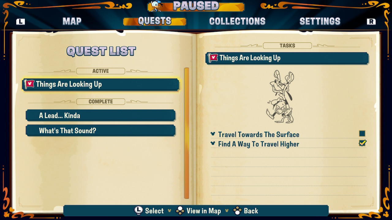 Η αλήθεια είναι ότι ο όρος “accessible metroidvania” και η χαμηλότερη τιμή μας είχαν κάπως ανησυχήσει, μήπως και επρόκειτο για έναν πιο low budget τίτλο και με χαμηλότερη ποιότητα. Οι άνθρωποι της Dlala Studios θέλησαν με το καλημέρα να μας καθησυχάσουν, αφού δηλώνουμε εντυπωσιασμένοι με το art style, την παρουσίαση των ηρώων και τη μουσική του τίτλου. Αυτά τα τρία στοιχεία παρουσιάζουν ένα εξαίρετο οπτικοακουστικό αποτέλεσμα, με τους Mickey, Minnie, Donald και Goofy να ακροβατούν ανάμεσα στα πολύ παλιά σκίτσα του Mickey αλλά και στο νέο στυλ και ύφος της Disney που έχουμε δει τις τελευταίες δεκαετίες. Είμαστε σίγουροι ότι ανάμεσα στους developers βρίσκονται fans του κόσμου της Disney, μιας και πέρα από τις πανέμορφες εικονογραφήσεις, μας έκανε θετική αίσθηση και η παρουσίαση των ηρώων σαν χαρακτήρες. O Mickey είναι ο γνωστός και αγαπητός leader, η Minney η πανέξυπνη ηρωίδα που πετάει τις κατάλληλες ατάκες, ο Goofy ο θετικός και φαγανός ήρωας και ο Donald δεν βγάζει προς τα έξω μία γραφική χαζομάρα που έχουμε δει ανά διαστήματα σε νεότερους σκιτσογράφους. Είναι όσο γκρινιάρης και κατσούφης πρέπει, ενώ όλοι μαζί λειτουργούν εξαιρετικά σαν ομάδα, ειδικά κατά την διάρκεια των cutscenes όπου υπάρχει και κανονικό voice over.
