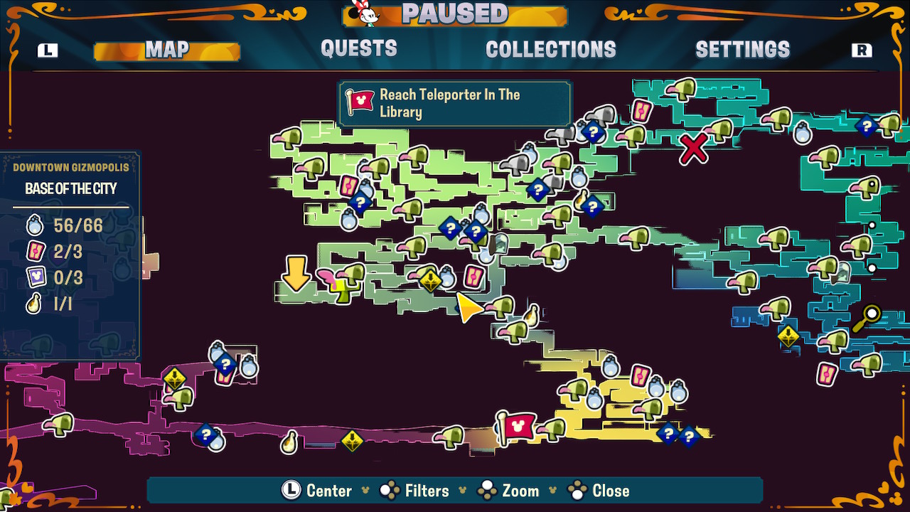 Μέσα στο παιχνίδι θα θέλαμε να ακούμε περισσότερο τις φωνές των χαρακτήρων κατά την διάρκεια των διαλόγων ή αν ήθελαν οι developers να το παρουσιάσουν ως comic adventure που παίζει με τις λέξεις, θα θέλαμε να το εξελίξουν λίγο περισσότερο από τα ένα-δύο σημεία όπου πάει να περαστεί κάτι τέτοιο μέσω του (πετυχημένου) χιούμορ. Η μουσική από την άλλη είναι πραγματικά εξαιρετική, ταιριάζει απόλυτα με τον κόσμο του Disney Illusion Island και ακολουθεί τα ενορχηστρωμένα και πλούσια soundtracks που έχουμε αγαπήσει κατά καιρούς από τις ταινίες. Είτε ο παίκτης ανήκει στους βετεράνους κομιξάδες, είτε σε νεότερο κοινό, θεωρούμε ότι θα αγαπήσει το ύφος του οπτικοακουστικού υλικού του τίτλου σε σχεδόν απόλυτο βαθμό. Αυτή η βάση είναι ιδιαίτερα σημαντική, αφού και από άποψη gameplay και επιλογών είναι ξεκάθαρο ότι έχουν γίνει επιλογές ώστε να μπορεί να παιχτεί από έμπειρους παίκτες αλλά και νεοφερμένο και νεαρό κοινό. Το “accessible Metroidvania” που είχε χρησιμοποιηθεί ως όρος ισχύει σε μεγάλο βαθμό, αν και πρόκειται πρώτα για ένα platformer και σε δεύτερο βαθμό για ένα metroidvania. Η δομή υπάρχει, αφού μιλάμε για έναν τεράστιο κόσμο με διαφορετικές περιοχές, όπου για να μπορέσουμε να έχουμε πρόσβαση απαιτείται και το κατάλληλο ability. Να μάθουμε το double jump, να πετάμε ή και να κολυμπάμε, μέσα από κάποιες εφευρέσεις που μας δίνει ένας ιδιαίτερα συμπαθής ροζ κροκόδειλος. Όλοι οι ήρωες έχουν τα ίδια χαρακτηριστικά από άποψη gameplay, αλλά τουλάχιστον σε επίπεδο παρουσίασης ο καθένας χρησιμοποιεί ένα διαφορετικό item (O Donald χρησιμοποιεί για γάντζο ένα καλάμι ψαρέματος και ο Goofy λουκάνικα). Όλα αυτά μαζί συνθέτουν μία ικανοποιητική και απροβλημάτιστη εμπειρία τόσο στον τομέα του platforming, όσο και στο Metroidvania. Οι developers φαίνεται ότι έχουν παρακολουθήσει παιχνίδια όπως το Rayman Legends, ενώ παράλληλα το έχτισαν σαν δομή στα πιο βασικά στοιχεία ενός metroidvania τίτλου.