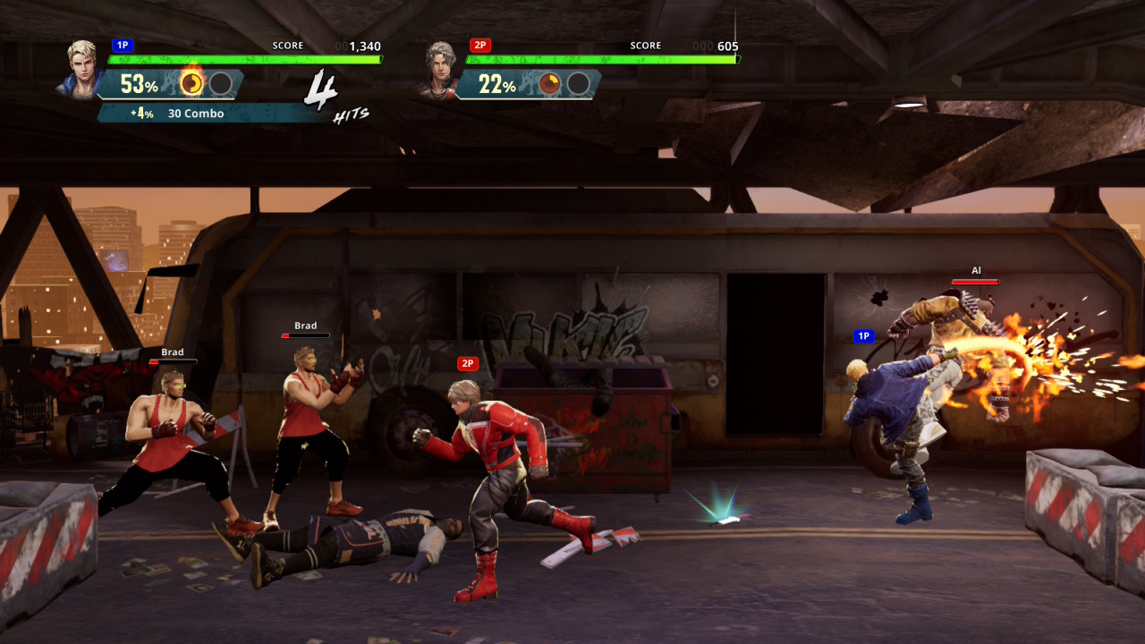 Πολλά από αυτά τα ζητήματα γίνονται λιγότερο αισθητά σε 2-player co-op, όπου η live διασκέδαση μασκαρεύει τις αδυναμίες. Το παιχνίδι υποστηρίζει και online, αλλά η εμπειρία εκεί ήταν απογοητευτική, καθώς δεν βρήκαμε ποτέ συμπαίκτες, ενώ πάνω από δύο ήρωες δεν μπορούν να συμμετάσχουν ταυτόχρονα στην αρένα. Στην πορεία υπάρχουν και άλλοι χαρακτήρες που μπορούμε να επιλέξουμε, πέρα των βασικών ηρώων Billy και Jimmy, με διαφορετικά movesets, αλλά χωρίς ιδιαίτερη φαντασία στα combo.