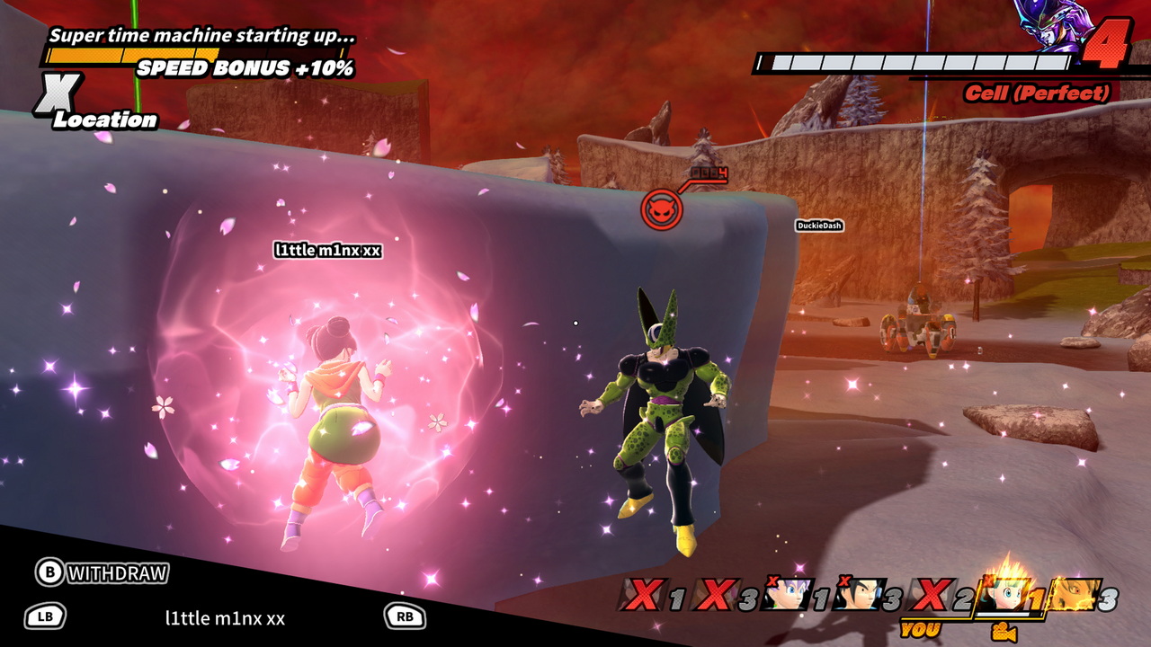 Ο λόγος που υπάρχουν αυτές οι δυσκολίες βρίσκεται στην φύση του παιχνιδιού η οποία προφανώς και επιβραβεύει μία ομάδα που θα συνεννοείται π.χ. μέσω headsets. Oι developers έδωσαν πολλές δυνάμεις στον raider, δηλαδή στον παίκτη που ελέγχει ένα villain, με σκοπό οι υπόλοιποι να νιώσουν ότι πράγματι αντιμετωπίζουν μία τεράστια απειλή. Οι κακοί της υπόθεσης περνάνε από διάφορα στάδια σκοτώνοντας απλούς NPCs αλλά και survivors, με σκοπό να φτάσουν την τελευταία τους πανίσχυρη μορφή σχετικά γρήγορα και να κερδίσουν τους αδύναμους αντιπάλους τους. Πράγματι, ένα από τα στοιχεία που μας άρεσε στο Dragon Ball: The Breakers είναι το πόσο σωστά έχουν περάσει αυτή την horror-like απειλή στον τίτλο, παρ’ ό,τι μιλάμε για ένα παιχνίδι που βασίζεται σε πολύχρωμο και goofy anime εικαστικό. Σαν survivor νιώθαμε την απειλή να μεγαλώνει όταν ακούγαμε τον Cell ή τον Buu να έρχεται κοντά μας. Ο raider έχει φυσικά στην κατοχή του τρανταχτές επιθέσεις, ενώ μπορεί να καταστρέψει ολόκληρες περιοχές της πίστας με μεγάλη ευκολία. Ο πανίσχυρος κακός της υπόθεσης θέλει απλώς να σκοτώσει άμεσα τους survivors ή εφόσον συγκεντρωθούν τα κατάλληλα εφόδια και κατασκευαστεί η μηχανή του χρόνου, να την διαλύσει γρήγορα ώστε να κερδίσει φυσικά τον αγώνα.