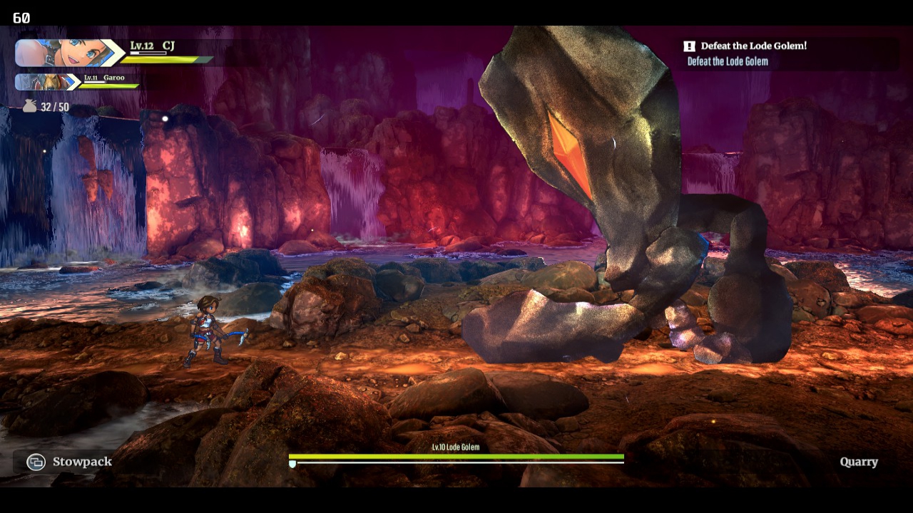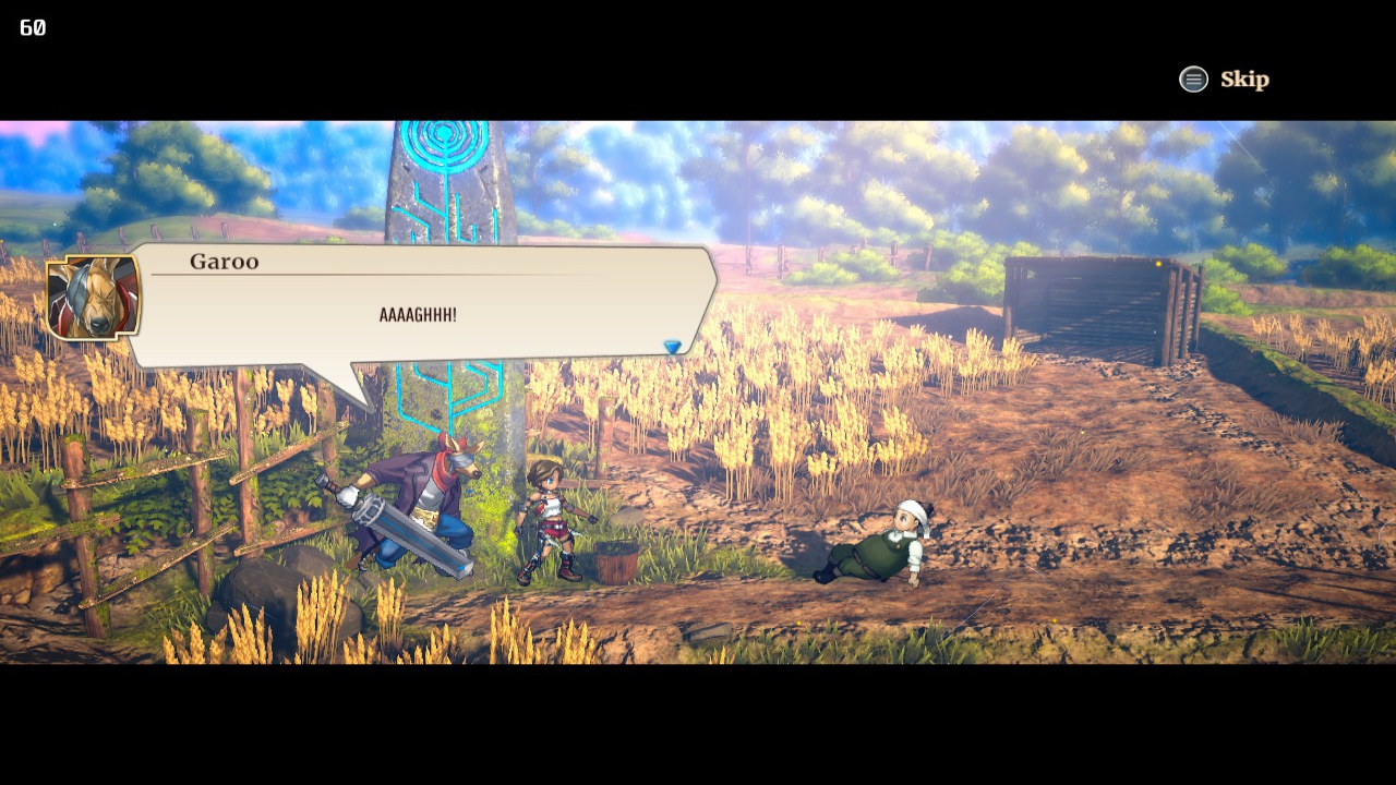 Η μονοτονία αρχίζει να «σπάει» λίγο, όταν ο Garoo -ένα μονόφθαλμο καγκουρό με ξίφος που θα ζήλευε ο Cloud Strife- ενώνει τις δυνάμεις του με τη CJ. Καταρχάς, αυτό ανοίγει το δρόμο για διαλόγους που αποκαλύπτουν πράγματα για τους χαρακτήρες και τον κόσμο, κάτι που έως τότε δεν υπάρχει σε πληθώρα. Έπειτα, δίνει λίγη μεγαλύτερη ποικιλία στη μάχη, η οποία πραγματικά τη χρειάζεται. Ως action RPG, θα περίμενε κανείς λίγο πιο ενεργή μάχη, ένα πιο πολύπλοκο σύστημα ή τέλος πάντων, κάτι πιο σύνθετο από ένα πλήκτρο. Κι όμως, το Eiyuden Chronicle: Rising στηρίζεται σε ένα πλήκτρο για τις πρώτες ώρες, με τη CJ να επιτίθεται κάνοντας το ίδιο σύντομο combo κάθε φορά. Μπορεί να εκτελεί άλματα και με τη δεξιά σκανδάλη, κινήσεις αποφυγής, κάτι που μόνο εκείνη μπορεί να κάνει. Όταν ο Garoo μπαίνει στην ομάδα, ένα άλλο πλήκτρο χρησιμοποιείται για τις επιθέσεις του, οπότε πρακτικά πλήκτρο ίσον χαρακτήρας. Η ειδική ικανότητά του είναι να βάζει το τεράστιο ξίφος του μπροστά και να αμύνεται, κάνοντας πολύ δυνατές αντεπιθέσεις.