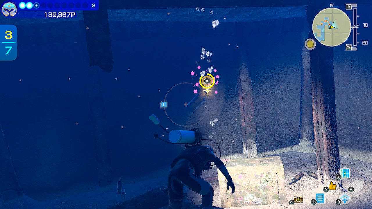 υτό το αχανές υποθαλάσσιο περιβάλλον προφανώς απαιτεί από τον παίκτη να έχει ένα έστω μικρό ενδιαφέρον για τον κόσμο και τα πλάσματα της θάλασσας και σίγουρα να θέλει να χαλαρώσει. Το Endless Ocean Luminous επικεντρώνεται ουσιαστικά στην χαλάρωση και στην εξερεύνηση, ένα είδος collectathlon στο οποίο δεν υπάρχει ουσιαστικά σενάριο για game over και όπου ακόμη και οι καρχαρίες κολυμπούν ατάραχοι δίπλα μας. Θα μπορούσαμε να το παρομοιάσουμε με το Pokemon Snap χωρίς χρονικούς περιορισμούς ή πολλά και διαφορετικά missions, τουλάχιστον σ’ ό,τι αφορά την βασική του εμπειρία, γιατί το παιχνίδι παρέχει και ένα είδος campaign. Ο παίκτης μπορεί να κολυμπάει με τον δύτη με τον αναλογικό μοχλό, να του δίνει μία ώθηση για πιο γρήγορη κίνηση πατώντας το πλήκτρο, να σκανάρει γρήγορα ένα ή περισσότερα πλάσματα πατώντας ή κρατώντας πατημένο το κουμπί του scanning, ενώ υπάρχει και ένα συμπαθητικό Photo Mode στο οποίο παρέχονται και κάποια έξτρα φίλτρα. Πραγματικά μιλάμε για την απόλυτη χαλαρωτική εμπειρία, χωρίς combo, χωρίς time trials και γενικότερα χωρίς κανένα απολύτως άγχος. Αυτό είναι και ένα εκ των βασικότερων χαρακτηριστικών του τίτλου, είναι φτιαγμένο για ένα πολύ συγκεκριμένο κοινό που αναζητά μία εμπειρία χαλάρωσης με βασικό γνώμονα την αγάπη για τους ωκεανούς.