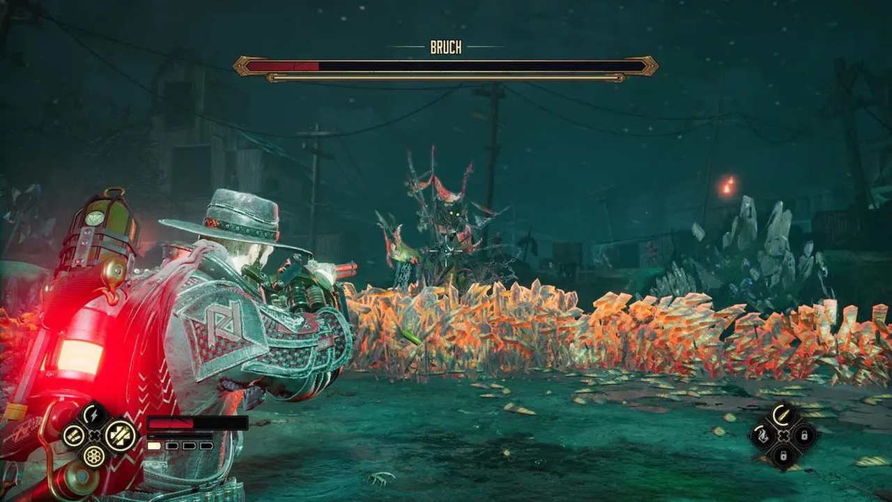 Οι μάχες λοιπόν, είναι ο ξεκάθαρος πρωταγωνιστής του Evil West, με επιθέσεις ranged και melee, και την πλάστιγγα να γέρνει προς τις δεύτερες. O Jesse διαθέτει πληθώρα εξοπλισμού που γίνεται σταδιακά διαθέσιμος και με σταθερό ρυθμό καθ’όλη τη διάρκεια του campaign, ενώ το πιστό του gauntlet τον βοηθάει όταν κλείνει την απόσταση, επιτρέποντάς του να ρίχνει γροθιές στα βαμπίρ με την ίδια ευκολία που θα το έκανε σε κάποιον πιο κοντά στα…ανθρώπινα μέτρα. Το skill tree γεμίζει με perk points που κερδίζονται σε κάθε level up, ενώ τα διαθέσιμα upgrades κερδίζονται με χρήματα, τα οποία και βρίσκονται διαθέσιμα προς συλλογή σε μικρές γωνιές του χάρτη, αλλά και με την φυσική πρόοδο. Το ευχάριστο είναι ότι από την αρχή μέχρι το τέλος υπάρχει μια σταθερή ροή καινούριου content, είτε με την μορφή όπλων, είτε εξοπλισμού, είτε skills/upgrades, κρατώντας πάντα το ενδιαφέρον ψηλά.