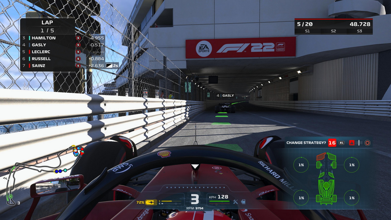 Για όσους δεν γνωρίζουν, η FIA έφερε τεράστιες αλλαγές στο δημοφιλέστερο κομμάτι του μηχανοκίνητου αθλητισμού. Τα μονοθέσια της Formula 1 ζυγίζουν πλέον πολύ περισσότερο, με πολλές αναπροσαρμογές και διαφοροποιήσεις στην αεροδυναμική τους προκειμένου να εκμεταλλεύονται το “ground-effect”. Το αποτέλεσμα είναι οι οδηγοί να μπορούν πλέον να οδηγούν πολύ κοντά ο ένας στον άλλο, με τα μονοθέσια να είναι πολύ πιο δύσκαμπτα και να πάσχουν από ένα τεράστιο πρόβλημα αναπήδησης, το οποίο ονομάζεται “porpoising”. Μπορούμε με σιγουριά να πούμε πως η Codemasters έχει εργαστεί πολύ σκληρά για να μεταφέρει αυτές τις αλλαγές στο F1 22. Επιπλέον, η ομάδα ανάπτυξης έκανε την πάρα πολύ σοφή επιλογή να μην προσομοιώσει το φαινόμενο του porpoising, απαλλάσσοντας τους παίκτες από την ενόχληση της συνεχούς αναπήδησης των μονοθέσιων στις ευθείες σε υψηλές ταχύτητες. Τα μονοθέσια του video game πράγματι φαντάζουν πιο "στιβαρά", πιο βαριά λες και είναι κολλημένα στην άσφαλτο, μεταφέροντας πλήρως στον παίκτη την αίσθηση του αυξημένου βάρους. Κατά τις προσπεράσεις ή το slipstreaming, γίνεται πολύ ξεκάθαρο και το ground effect. Η διαφορά στην οδήγηση είναι μεγάλη, αφού τα μονοθέσια του F1 21 φαντάζουν πλέον πλαστικά Hot Wheels αν οδηγήσει κανείς αυτά του F1 22. Ακόμη μια έντονη διαφορά είναι πως ο νέος τίτλος της Codemasters δεν συγχωρεί εύκολα λάθη. Αν έχετε κλειστά όλα τα assists για να βιώσετε όσο πιο έντονα γίνεται την προσομοίωση της οδήγησης, η παραμικρή διακύμανση στο γκάζι, φρένο και τιμόνι μπορεί να σας στείλει στον τοίχο πριν προλάβετε να διορθώσετε το λάθος σας.