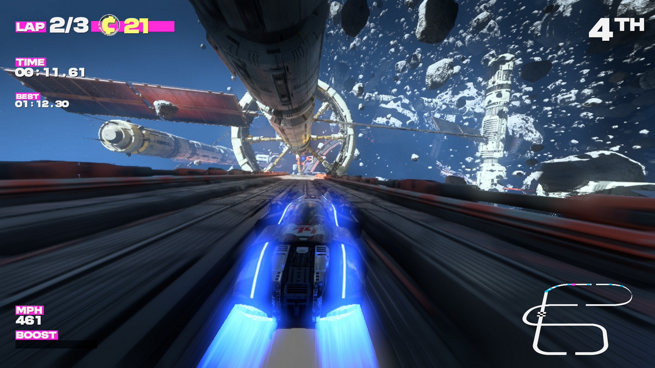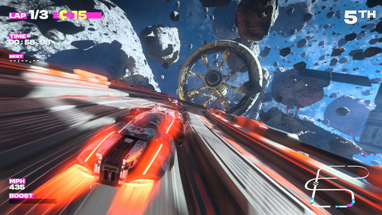 Αντίθετα, ο στόλος των οχημάτων/διαστημοπλοίων είναι πιο πλούσιος, αφού δίνει τη δυνατότητα όχι μόνο να αγοράσουμε νέα, καλύτερα οχήματα με το in-game currency, αλλά και να δημιουργήσουμε. Η λέξη “fusion” δεν μπήκε τυχαία στον τίτλο του παιχνιδιού, αφού η ιδέα είναι απλή αλλά λειτουργική: συγχωνεύουμε δύο υπάρχοντα οχήματα και προκύπτει ένα νέο, με βελτιωμένες επιδόσεις. Το αν αξίζει το πάντρεμα των δύο οχημάτων που επιλέξαμε, αυτό το επικοινωνεί το σύστημα αξιολόγησης του Fast Fusion που θυμίζει το αυτοκόλλητο ενέργειας σε ψυγεία και τηλεοράσεις: τα οχήματα Α++ αξίζουν περισσότερο από εκείνα με βαθμολογία Β. Εννοείται ότι πέρα από αυτήν την βαθμολόγηση υπάρχουν και τα stats των οχημάτων, με συγκριτικές μπάρες που βασίζονται σε χρώματα και αναδεικνύουν τι χάνουμε και τι κερδίζουμε με την εκάστοτε επιλογή μας. Πρέπει να σημειώσουμε όμως ότι υπάρχει αρκετό grind για να αποκτήσουμε τα καλύτερα οχήματα. Αν και οι νίκες φέρνουν περισσότερο χρήμα, το in-game economy θα μπορούσε να είναι πιο γενναιόδωρο — κάτι που τελικά αναγνώρισε και η ίδια η Shin’en, μειώνοντας την τιμή πρόσβασης στο τρίτο Cup με το πρόσφατο update.