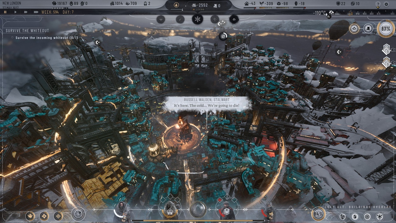Έχοντας αυτό το τελευταίο σαν ακρογωνιαίο λίθο σε κάθε απόφαση που πρέπει να ληφθεί, και όσο πιο γρήγορα γίνει αυτό τόσο πιο «εύκολη» θα γίνει η ζωή του επίδοξου Steward. Τα εισαγωγικά είναι λίγο-πολύ απαραίτητα, αφού κάθε άλλο παρά εύκολο είναι το έργο, σε κάθε περίπτωση. Σε πρώτη φάση οι χρήστες πρέπει να παλεύουν συνεχώς με τις καιρικές συνθήκες και το κρύο που δεν λέει να καταλαγιάσει πρακτικά ποτέ, παρά μόνο χειροτερεύει σε εποχές. Στη συνέχεια θα πρέπει να εξασφαλίσουν στέγαση για όλους, αποδεκτές συνθήκες διαβίωσης και εργασίας, να βρεθούν υλικά, τροφή και καύσιμη ύλη. Το τελευταίο είναι και αυτό που θα αναγκάσει την επέκταση προς τα έξω, αφού δεν υπάρχει κάποια σταθερή πηγή καυσίμου, κάτι που κατά συνέπεια βάζει ημερομηνία λήξης σε όσα σχέδια απομόνωσης υπήρχαν. Αυτό πολύ γρήγορα σημαίνει εξερεύνηση των γύρω περιοχών, με όλα όσα συνεπάγεται αυτό, και εύρεση μια δεύτερης, μόνιμης πηγής καυσίμου, ούτως ώστε να μην παγώσει ο πληθυσμός του Νέου Λονδίνου, κάτι που με τη σειρά του γίνεται μια ολόκληρη αποικία/δεύτερη πόλη, με τα δικά της θέματα και τις δικές της ιδιαιτερότητες και ανάγκες.
